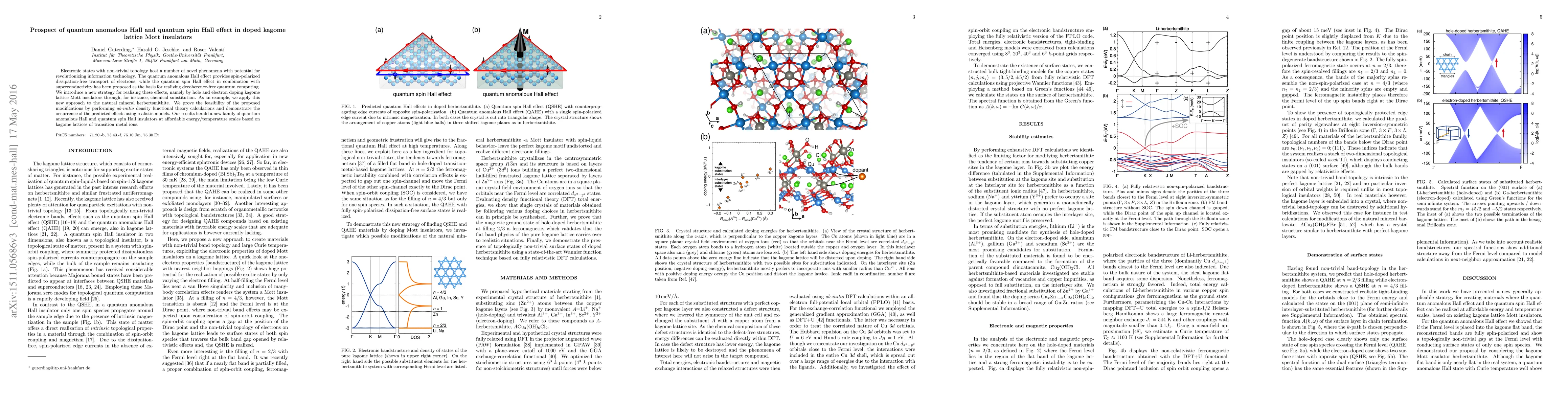This research explores the potential of doped kagome lattice Mott insulators to exhibit quantum anomalous Hall and quantum spin Hall effects through hole and electron doping, utilizing density functional theory calculations. The study demonstrates feasibility in creating these topological insulators at practical energy scales, exemplified by the mineral herbertsmithite.