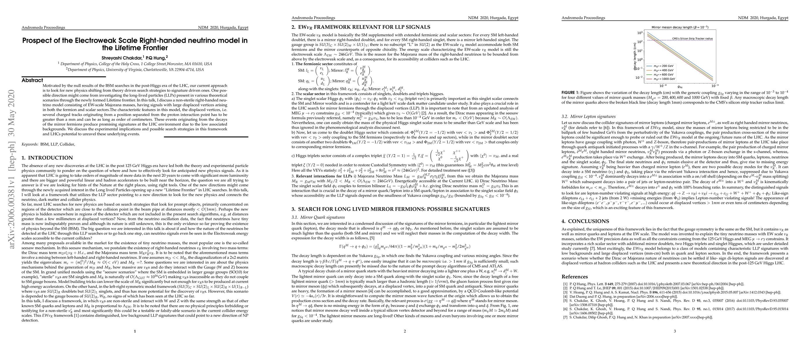 Motivated by the null results of the BSM searches in the post-Higgs era of the LHC, our current approach is to look for new physics shifting from theory driven search strategies to signature driven ones. One possible direction might come from investigating the long-lived particles (LLPs) present in various theoretical scenarios through the newly formed Lifetime frontier. In this talk, I discuss a non-sterile right-handed neutrino model consisting of EW-scale Majorana masses, having signals with large displaced vertices arising in both the fermion and scalar sectors. The characteristic features in this model, the displaced vertices, i.e. several charged tracks originating from a position separated from the proton interaction point has to be greater than a mm and can be as long as order of centimeters. These events originating from the decays of the mirror fermions produce promising signatures at the LHC environment due to the low associated backgrounds. We discuss the experimental implications and possible search strategies in this framework and LHCs potential to unravel these underlying events.