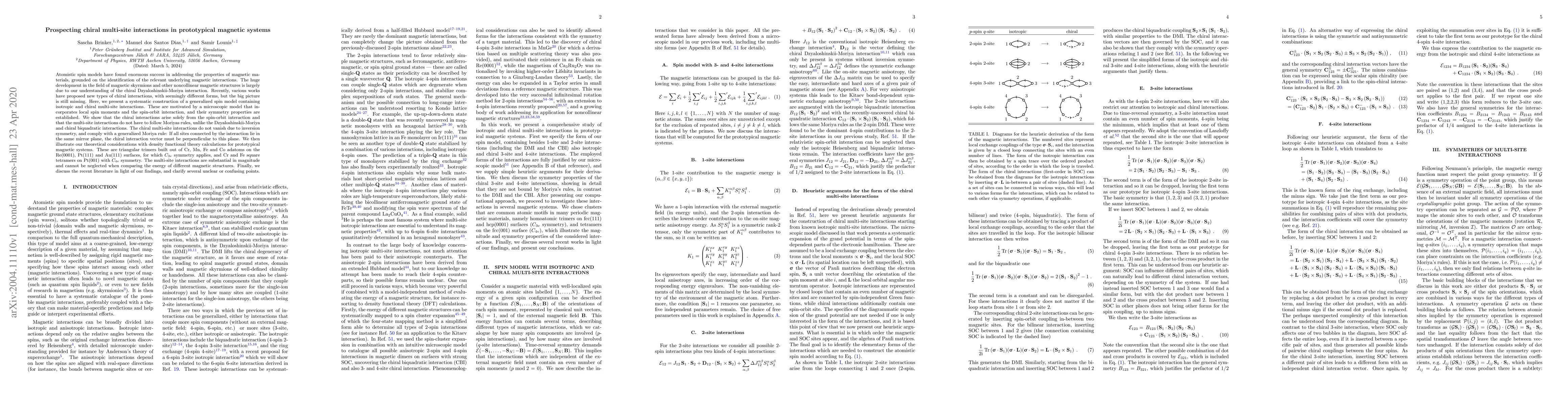 Atomistic spin models have found enormous success in addressing the properties of magnetic materials, grounded on the identification of the relevant underlying magnetic interactions. The huge development in the field of magnetic skyrmions and other noncollinear magnetic structures is largely due to our understanding of the chiral Dzyaloshinskii-Moriya interaction. Recently, various works have proposed new types of chiral interactions, with seemingly different forms, but the big picture is still missing. Here, we present a systematic construction of a generalized spin model containing isotropic and chiral multi-site interactions. These are motivated by a microscopic model that incorporates local spin moments and the spin-orbit interaction, and their symmetry properties are established. We show that the chiral interactions arise solely from the spin-orbit interaction and that the multi-site interactions do not have to follow Moriya's rules, unlike the Dzyaloshinskii-Moriya and chiral biquadratic interactions. The chiral multi-site interactions do not vanish due to inversion symmetry, and comply with a generalized Moriya rule: If all sites connected by the interaction lie in the same mirror plane, the chiral interaction vector must be perpendicular to this plane. We then illustrate our theoretical considerations with density functional theory calculations for prototypical magnetic systems. These are triangular trimers built out of Cr, Mn, Fe and Co adatoms on the Re(0001), Pt(111) and Au(111) surfaces, for which $C_\mathrm{3v}$ symmetry applies, and Cr and Fe square tetramers on Pt(001) with $C_\mathrm{4v}$ symmetry. The multi-site interactions are substantial in magnitude and cannot be neglected when comparing the energy of different magnetic structures. Finally, we discuss the recent literature in light of our findings, and clarify several unclear or confusing points.