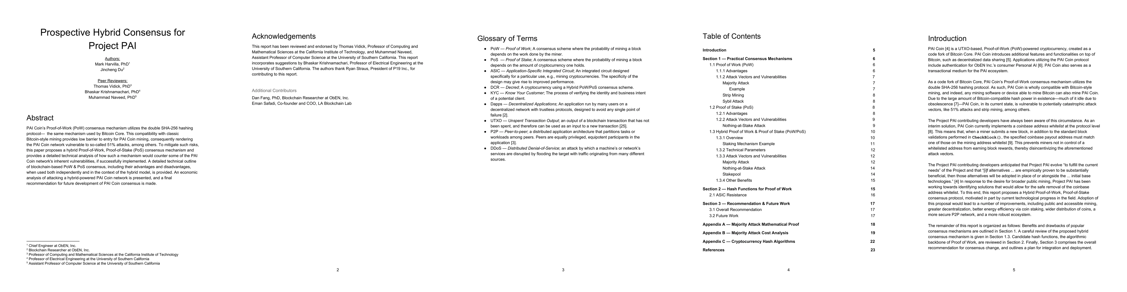 PAI Coin's Proof-of-Work (PoW) consensus mechanism utilizes the double SHA-256 hashing protocol-- the same mechanism used by Bitcoin Core. This compatibility with classic Bitcoin-style mining provides low barrier to entry for PAI Coin mining, consequently rendering the PAI Coin network vulnerable to so-called 51% attacks, among others. To mitigate such risks, this paper proposes a hybrid Proof-of-Work, Proof-of-Stake (PoS) consensus mechanism and provides a detailed technical analysis of how such a mechanism would counter some of the PAI Coin network's inherent vulnerabilities, if successfully implemented. A detailed technical outline of blockchain-based PoW & PoS consensus, including their advantages and disadvantages, when used both independently and in the context of the hybrid model, is provided. An economic analysis of attacking a hybrid-powered PAI Coin network is presented, and a final recommendation for future development of PAI Coin consensus is made.
