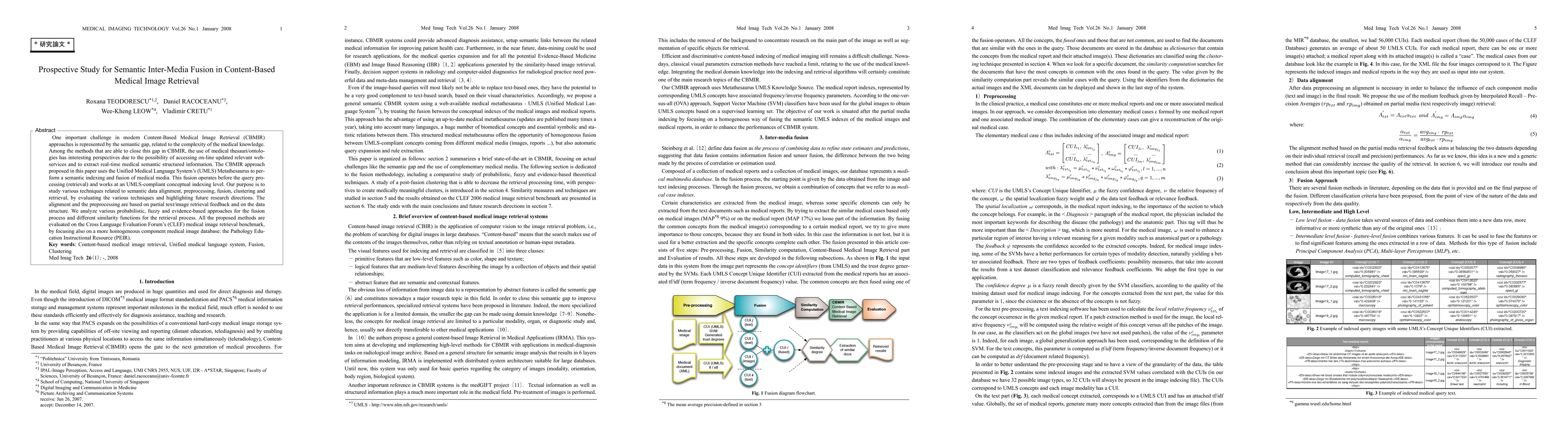 This paper proposes a CBMIR approach using UMLS Metathesaurus for semantic indexing and fusion of medical media, aiming to bridge the semantic gap. It evaluates various techniques for data alignment, fusion, and retrieval, and assesses them on CLEF and PEIR medical image datasets.