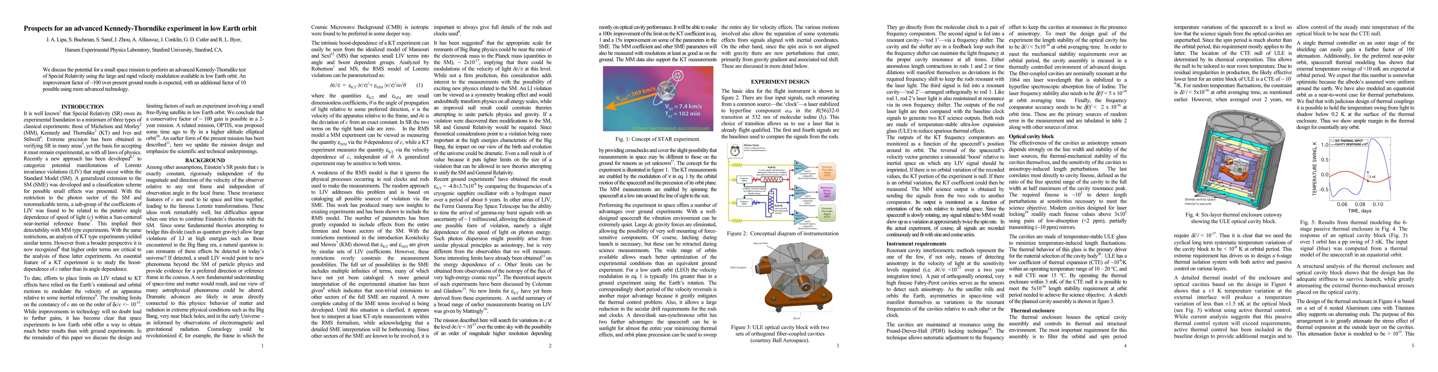 We discuss the potential for a small space mission to perform an advanced Kennedy-Thorndike test of Special Relativity using the large and rapid velocity modulation available in low Earth orbit. An improvement factor of ~100 over present ground results is expected, with an additional factor of 10 possible using more advanced technology.