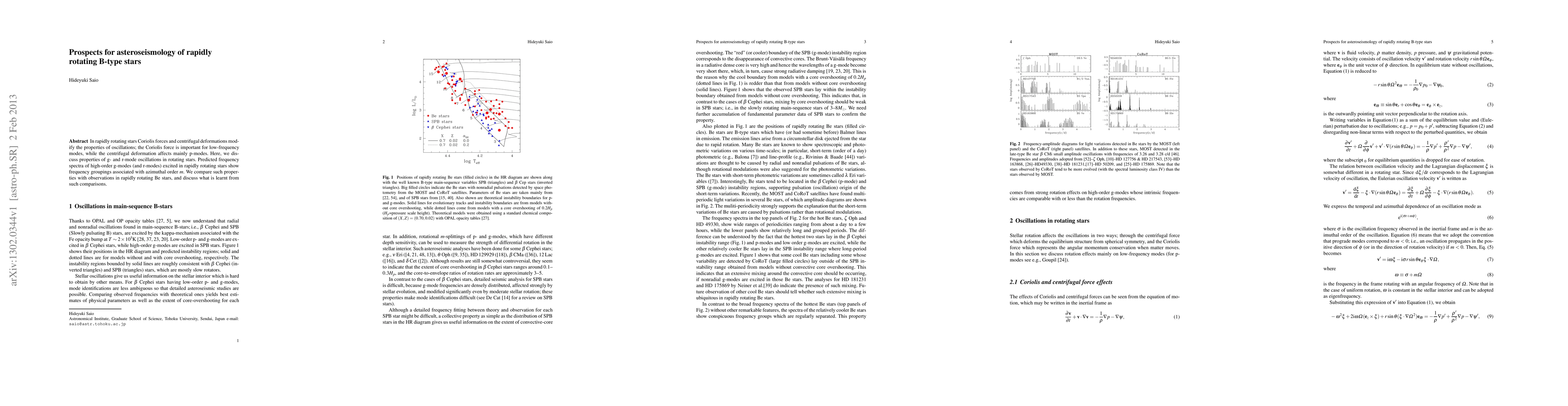 In rapidly rotating stars Coriolis forces and centrifugal deformations modify the properties of oscillations; the Coriolis force is important for low-frequency modes, while the centrifugal deformation affects mainly p-modes. Here, we discuss properties of g- and r-mode oscillations in rotating stars. Predicted frequency spectra of high-order g-modes (and r-modes) excited in rapidly rotating stars show frequency groupings associated with azimuthal order $m$. We compare such properties with observations in rapidly rotating Be stars, and discuss what is learnt from such comparisons.