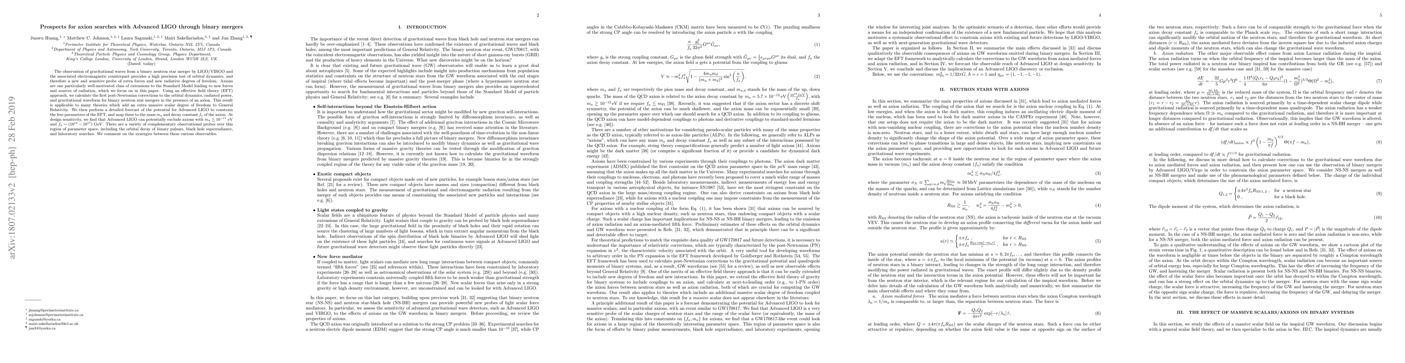 This paper explores the potential of Advanced LIGO to detect axions through gravitational waves from binary neutron star mergers, using an effective field theory approach. It forecasts that Advanced LIGO could constrain axion parameters, excluding axions with masses $m_a \lesssim 10^{-11}$ eV and decay constants $f_a \sim (10^{14} - 10^{17})$ GeV, highlighting synergies with other observational methods.