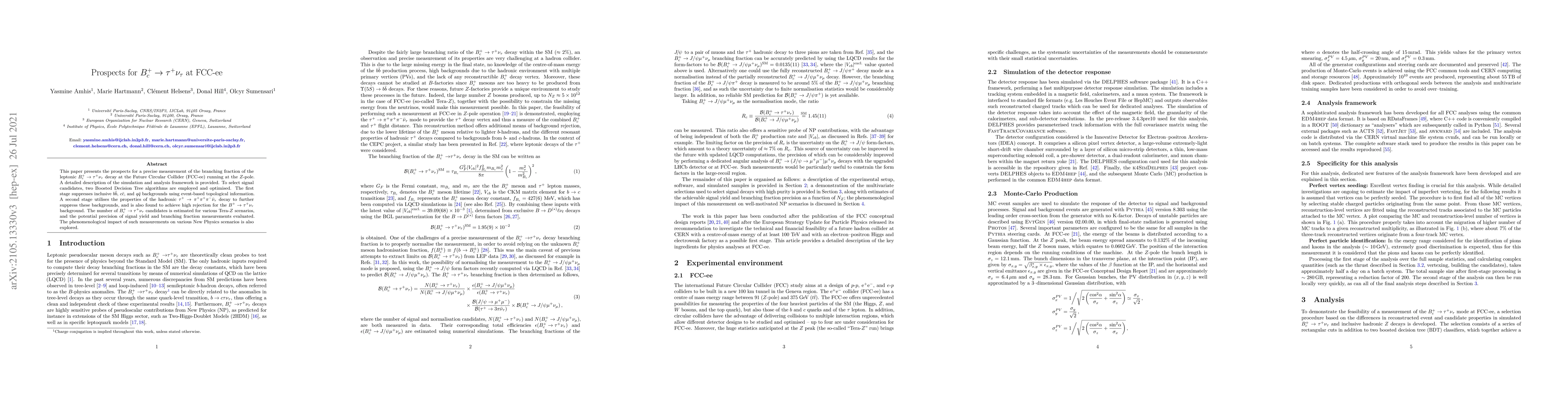 This paper evaluates the prospects for measuring the $B_{c}^+\to \tau^+ \nu_\tau$ decay at FCC-ee, employing optimized Boosted Decision Tree algorithms for background suppression and estimating the precision of the branching fraction. The study also assesses the phenomenological implications for New Physics scenarios.