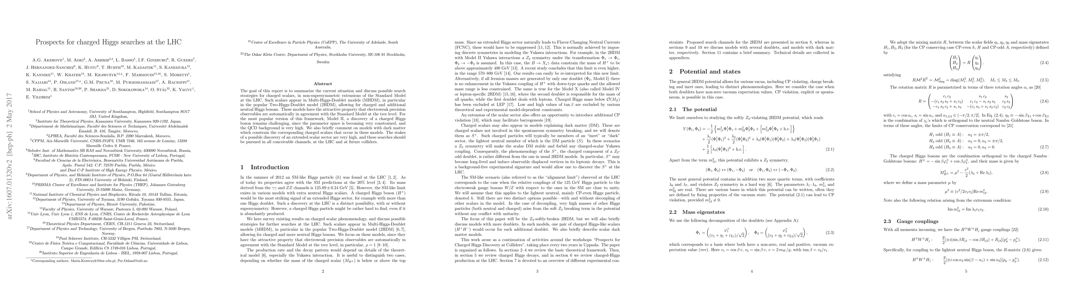 The goal of this report is to summarize the current situation and discuss possible search strategies for charged scalars, in non-supersymmetric extensions of the Standard Model at the LHC. Such scalars appear in Multi-Higgs-Doublet models (MHDM), in particular in the popular Two-Higgs-Doublet model (2HDM), allowing for charged and additional neutral Higgs bosons. These models have the attractive property that electroweak precision observables are automatically in agreement with the Standard Model at the tree level. For the most popular version of this framework, Model~II, a discovery of a charged Higgs boson remains challenging, since the parameter space is becoming very constrained, and the QCD background is very high. We also briefly comment on models with dark matter which constrain the corresponding charged scalars that occur in these models. The stakes of a possible discovery of an extended scalar sector are very high, and these searches should be pursued in all conceivable channels, at the LHC and at future colliders.