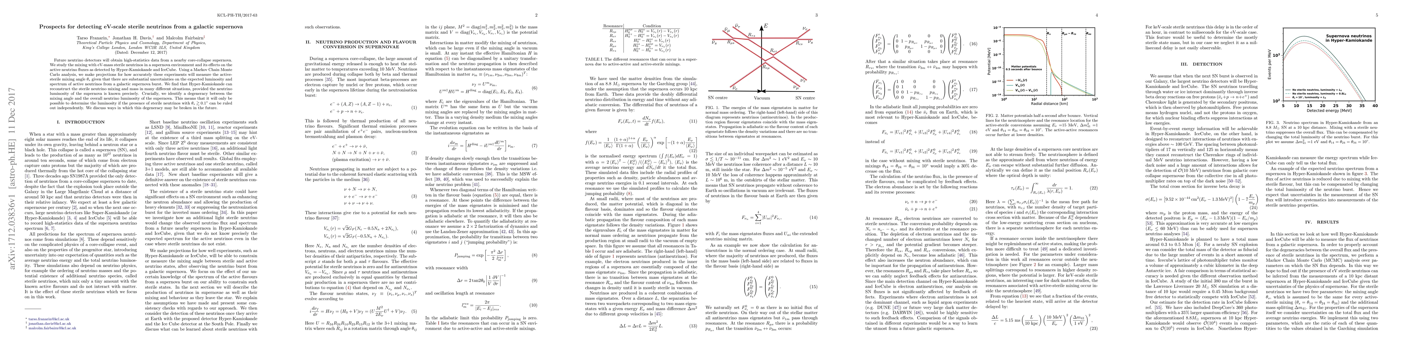 This paper investigates the potential for detecting eV-scale sterile neutrinos from a galactic supernova using future neutrino detectors like Hyper-Kamiokande and IceCube. It finds that while these detectors can measure the active-sterile mixing angle, a significant degeneracy between the mixing angle and supernova neutrino luminosity complicates precise measurements.