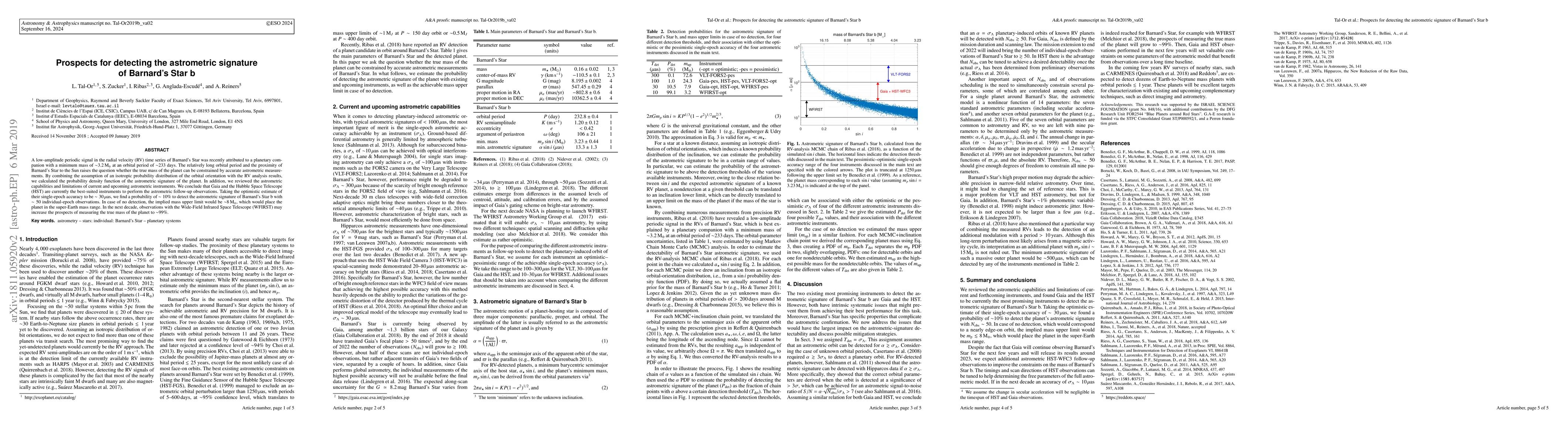 This paper investigates the potential to detect the astrometric signature of Barnard's Star b, a proposed planet with a minimum mass of 3.2 Earth masses, using current and future astrometric instruments. The study finds that while Gaia and HST could detect the astrometric signature with a 10% probability, WFIRST may achieve a 99% detection rate in the next decade, potentially determining the planet's true mass.