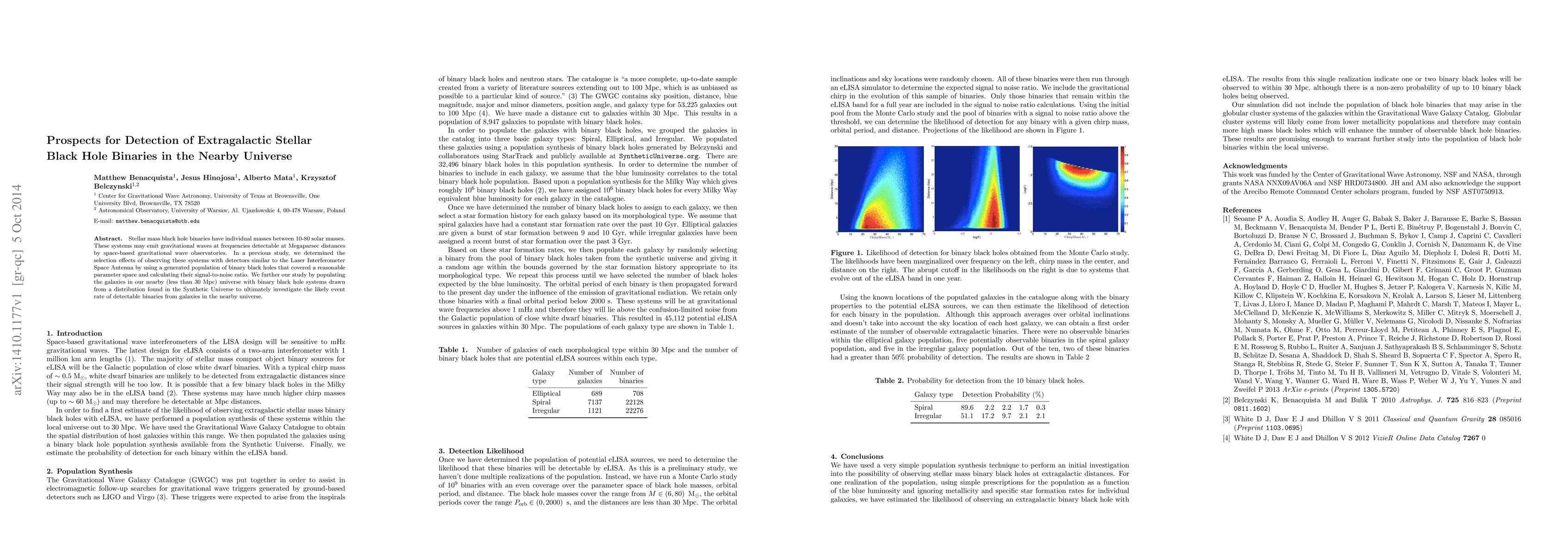 Stellar mass black hole binaries have individual masses between 10-80 solar masses. These systems may emit gravitational waves at frequencies detectable at Megaparsec distances by space-based gravitational wave observatories. In a previous study, we determined the selection effects of observing these systems with detectors similar to the Laser Interferometer Space Antenna by using a generated population of binary black holes that covered a reasonable parameter space and calculating their signal-to-noise ratio. We further our study by populating the galaxies in our nearby (less than 30 Mpc) universe with binary black hole systems drawn from a distribution found in the Synthetic Universe to ultimately investigate the likely event rate of detectable binaries from galaxies in the nearby universe.
