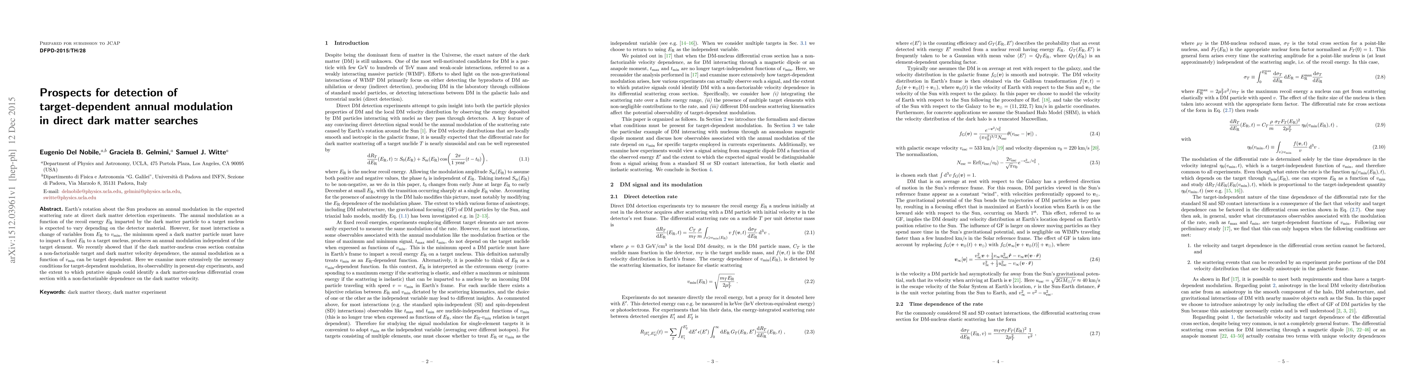 This paper investigates the potential for detecting annual modulation in direct dark matter searches that varies with detector material due to non-factorizable target and dark matter velocity dependence. It explores the conditions under which such modulation could be observed and its implications for identifying the dark matter-nucleus interaction model.
