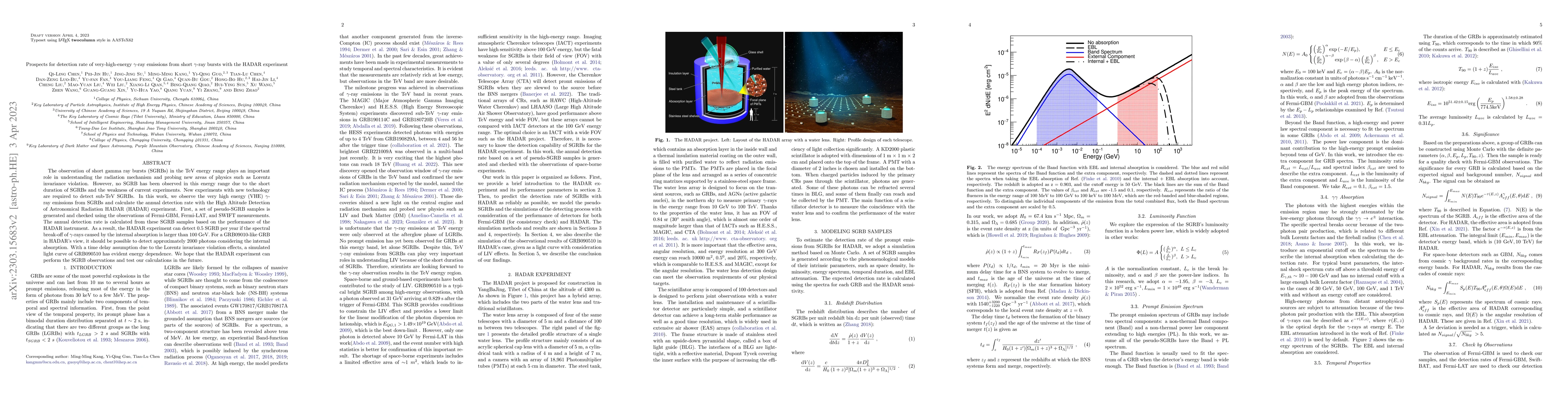 This paper investigates the prospects of detecting very-high-energy gamma-ray emissions from short gamma-ray bursts (SGRBs) using the HADAR experiment. The HADAR experiment could detect 0.5 SGRBs per year if the gamma-ray spectral break-off exceeds 100 GeV, potentially observing around 2000 photons from a GRB09010-like event.