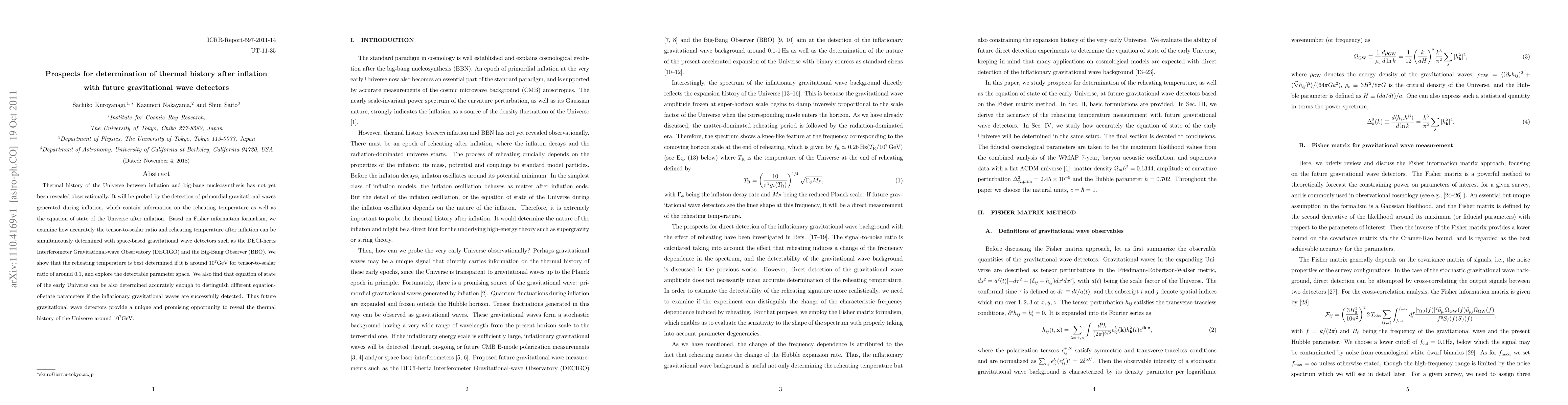 Thermal history of the Universe between inflation and big-bang nucleosynthesis has not yet been revealed observationally. It will be probed by the detection of primordial gravitational waves generated during inflation, which contain information on the reheating temperature as well as the equation of state of the Universe after inflation. Based on Fisher information formalism, we examine how accurately the tensor-to-scalar ratio and reheating temperature after inflation can be simultaneously determined with space-based gravitational wave detectors such as the DECI-hertz Interferometer Gravitational-wave Observatory (DECIGO) and the Big-Bang Observer (BBO). We show that the reheating temperature is best determined if it is around 10^7 GeV for tensor-to-scalar ratio of around 0.1, and explore the detectable parameter space. We also find that equation of state of the early Universe can be also determined accurately enough to distinguish different equation-of-state parameters if the inflationary gravitational waves are successfully detected. Thus future gravitational wave detectors provide a unique and promising opportunity to reveal the thermal history of the Universe around 10^7 GeV.