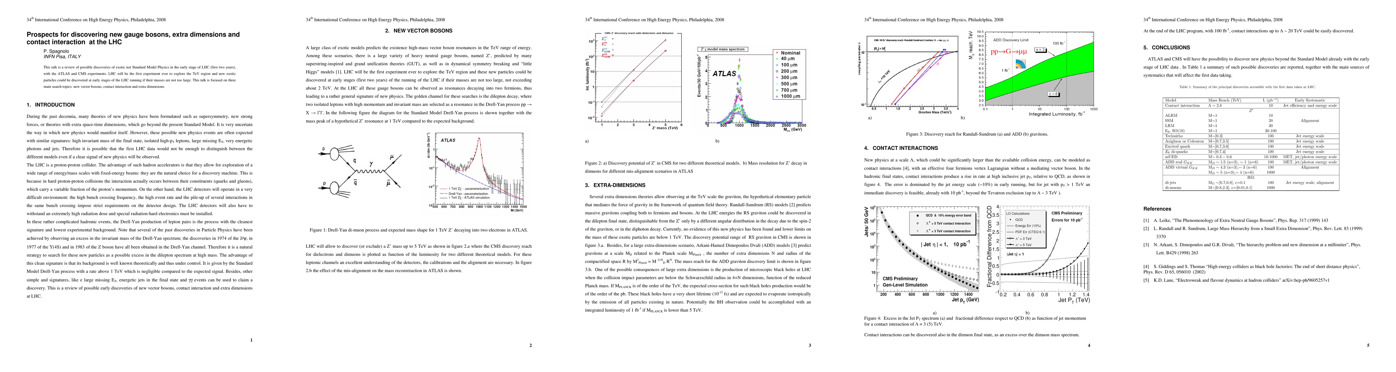 Summary: This paper reviews the potential for discovering new gauge bosons, extra dimensions, and contact interactions in the early stages of the LHC using the ATLAS and CMS experiments. It emphasizes the possibility of uncovering exotic particles in the TeV region, particularly focusing on new vector bosons, contact interactions, and extra-dimensional phenomena.