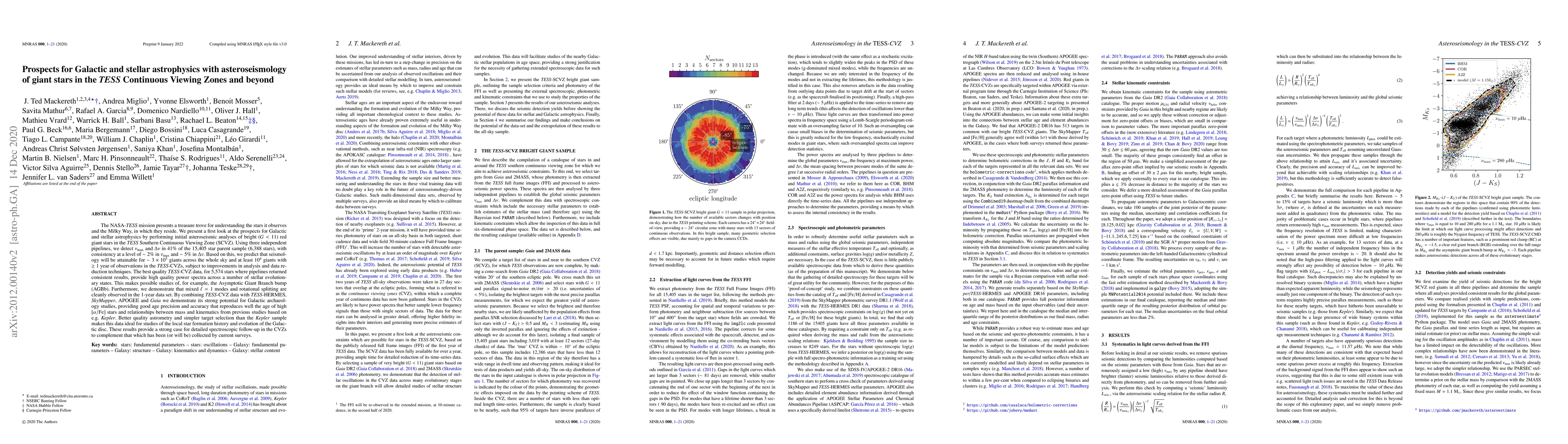 The NASA TESS mission offers significant opportunities for asteroseismic studies of red giant stars, revealing detailed insights into stellar and Galactic astrophysics. Initial analyses of stars in the Southern Continuous Viewing Zone (SCVZ) show promising prospects for seismology across hundreds of thousands of giant stars, with high-quality data enabling studies of stellar evolution and Galactic archaeology.