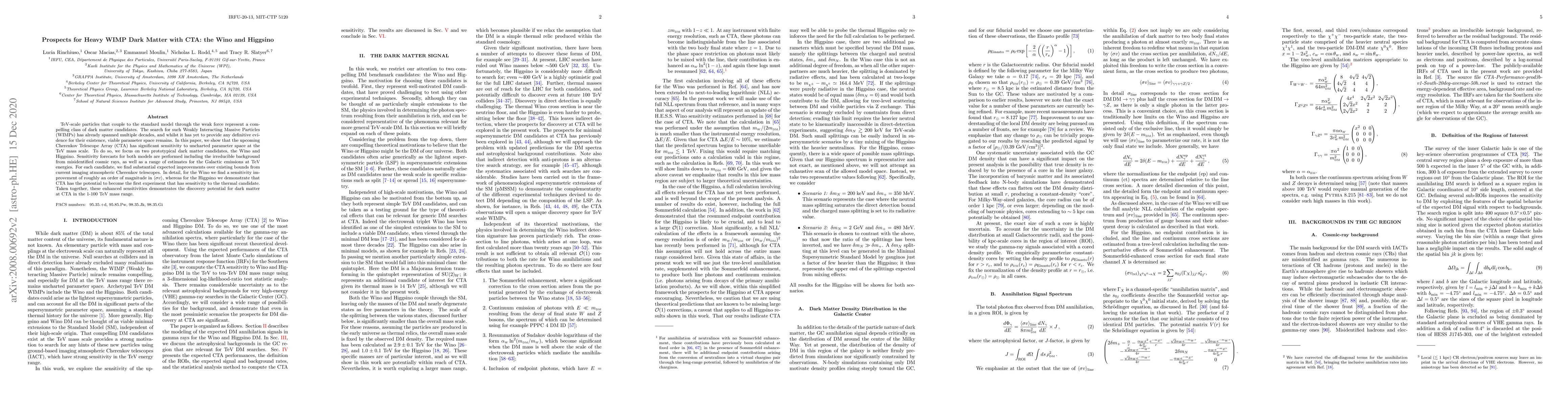 The CTA telescope has improved sensitivity to detect heavy WIMP dark matter candidates like the Wino and Higgsino at TeV scales, offering a potential breakthrough in dark matter discovery.