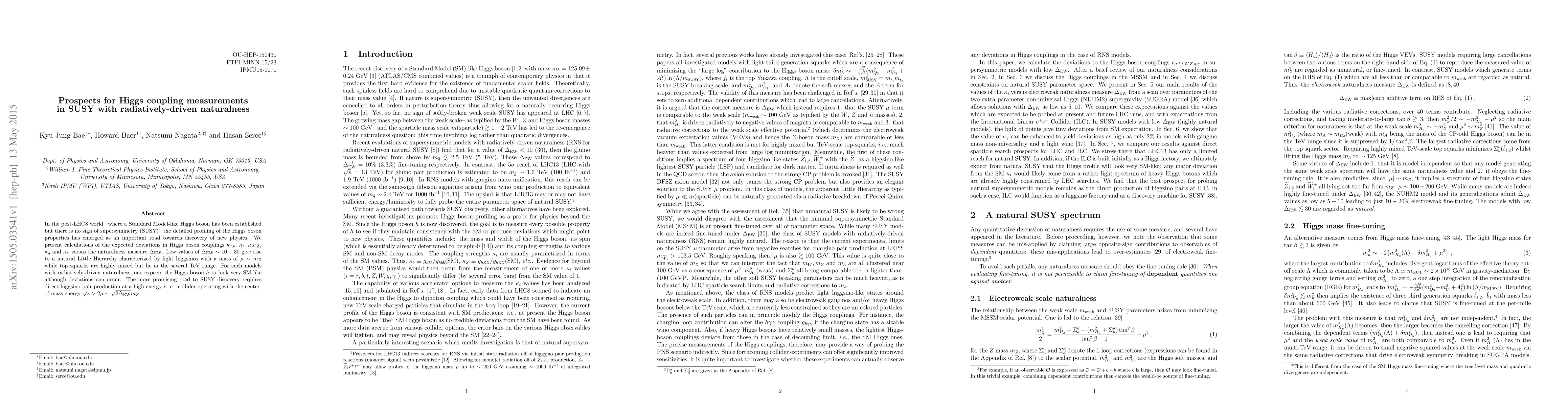 This paper explores how Higgs coupling measurements can reveal new physics in the context of supersymmetry (SUSY) when naturalness is driven by radiative processes. It finds that low naturalness measures lead to light higgsinos and highly mixed top squarks, suggesting that while the Higgs boson may appear Standard Model-like, deviations in its couplings could hint at SUSY, with higgsino pair production at high-energy colliders being the most promising detection method.