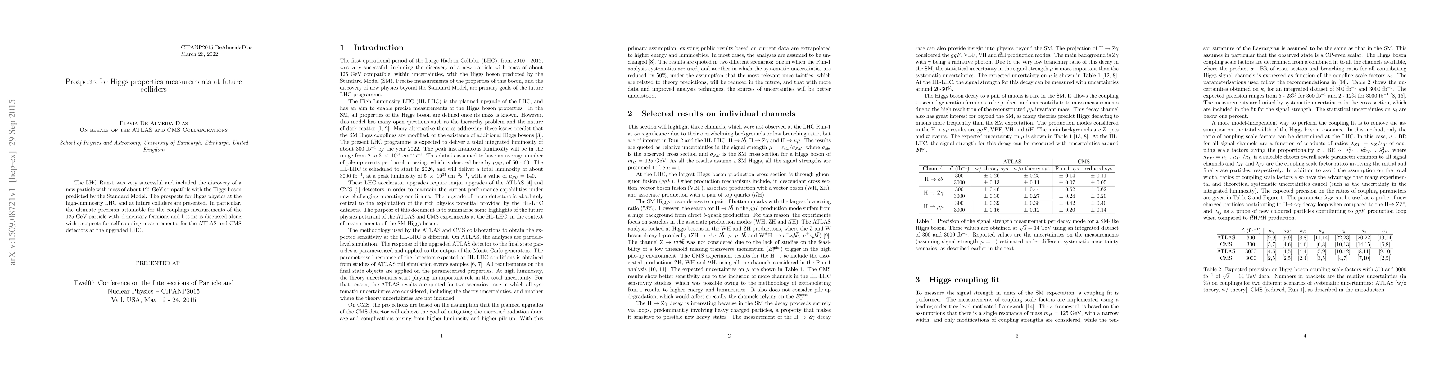The LHC Run-1 was very successful and included the discovery of a new particle with mass of about 125 GeV compatible with the Higgs boson predicted by the Standard Model. The prospects for Higgs physics at the high-luminosity LHC and at future colliders are presented. In particular, the ultimate precision attainable for the couplings measurements of the 125 GeV particle with elementary fermions and bosons is discussed along with prospects for self-coupling measurements, for the ATLAS and CMS detectors at the upgraded LHC.