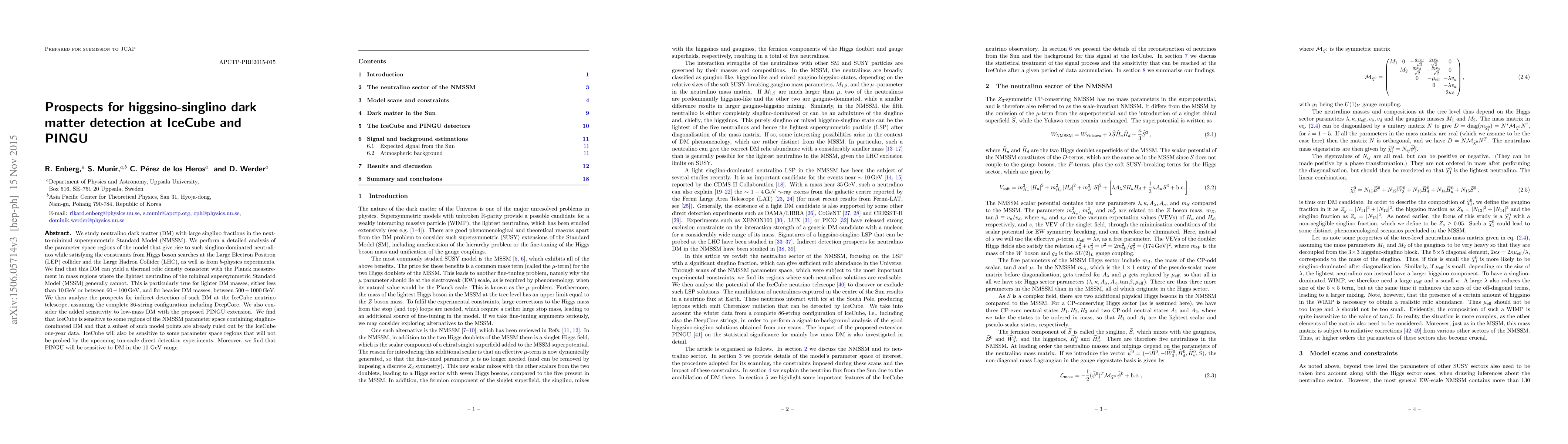 This paper investigates neutralino dark matter with significant singlino components in the NMSSM, finding it can match observed relic densities in mass regions not covered by the MSSM. It concludes that IceCube and the proposed PINGU extension can detect this DM, particularly in the 10 GeV and 60-100 GeV mass ranges, with IceCube already ruling out some NMSSM models and PINGU enhancing sensitivity to low-mass DM.