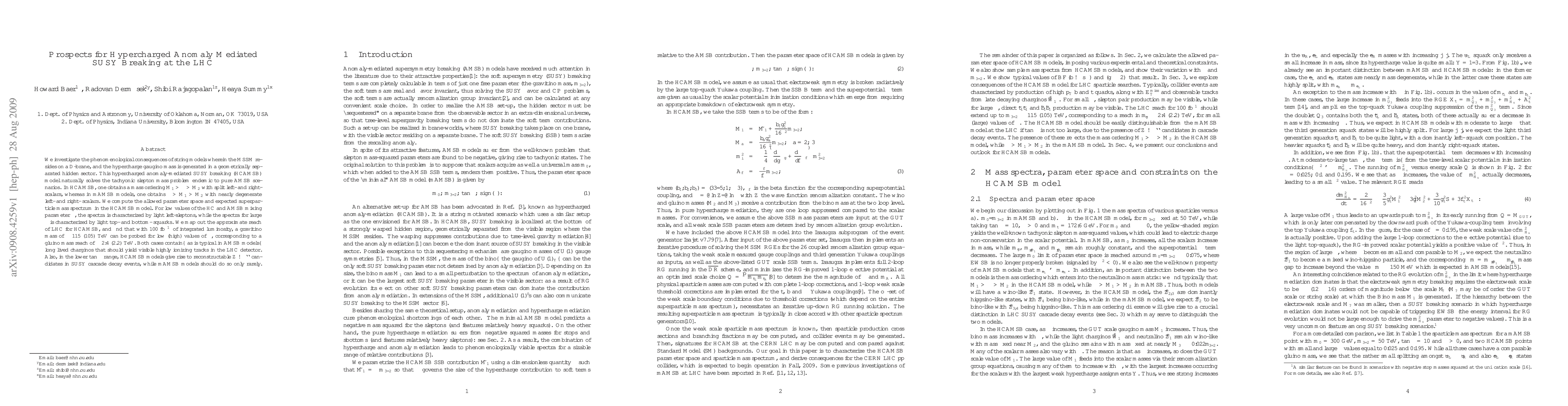 This paper explores the HCAMSB model, a variant of anomaly-mediated SUSY breaking where the hypercharge gaugino mass arises from a separate hidden sector. It predicts a distinctive mass ordering and resolves the tachyonic slepton issue in pure AMSB scenarios. The LHC's reach in this model is mapped, showing potential for probing gravitino masses up to ~115 TeV and gluino masses up to ~2.4 TeV with sufficient luminosity.