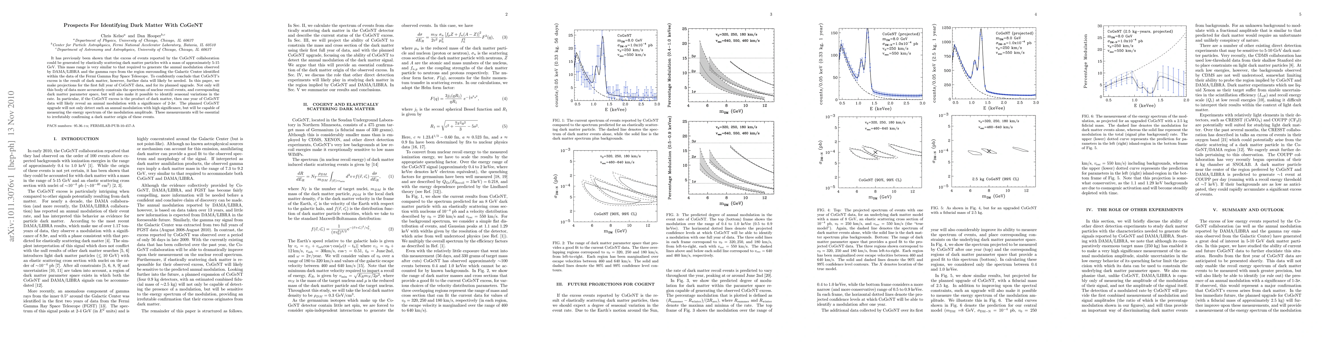 It has previously been shown that the excess of events reported by the CoGeNT collaboration could be generated by elastically scattering dark matter particles with a mass of approximately 5-15 GeV. This mass range is very similar to that required to generate the annual modulation observed by DAMA/LIBRA and the gamma rays from the region surrounding the Galactic Center identified within the data of the Fermi Gamma Ray Space Telescope. To confidently conclude that CoGeNT's excess is the result of dark matter, however, further data will likely be needed. In this paper, we make projections for the first full year of CoGeNT data, and for its planned upgrade. Not only will this body of data more accurately constrain the spectrum of nuclear recoil events, and corresponding dark matter parameter space, but will also make it possible to identify seasonal variations in the rate. In particular, if the CoGeNT excess is the product of dark matter, then one year of CoGeNT data will likely reveal an annual modulation with a significance of 2-3$\sigma$. The planned CoGeNT upgrade will not only detect such an annual modulation with high significance, but will be capable of measuring the energy spectrum of the modulation amplitude. These measurements will be essential to irrefutably confirming a dark matter origin of these events.