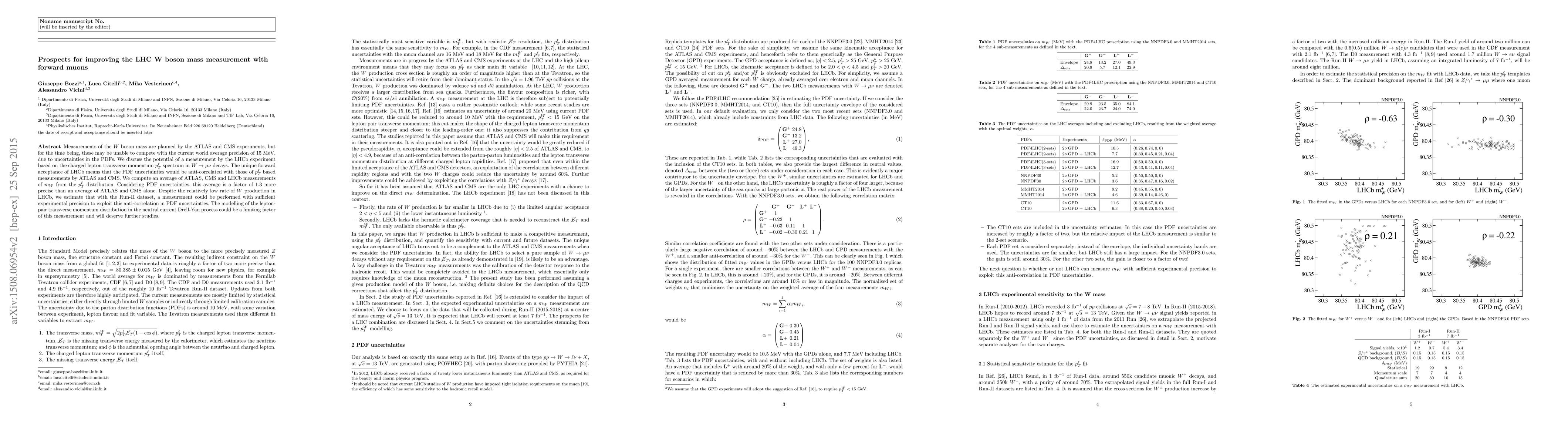 This paper explores the potential of the LHCb experiment to improve the precision of W boson mass measurements using forward muons, leveraging its unique forward acceptance to reduce uncertainties from parton distribution functions (PDFs). The study suggests that combining LHCb's results with those from ATLAS and CMS could yield a more precise average measurement than using ATLAS and CMS alone.