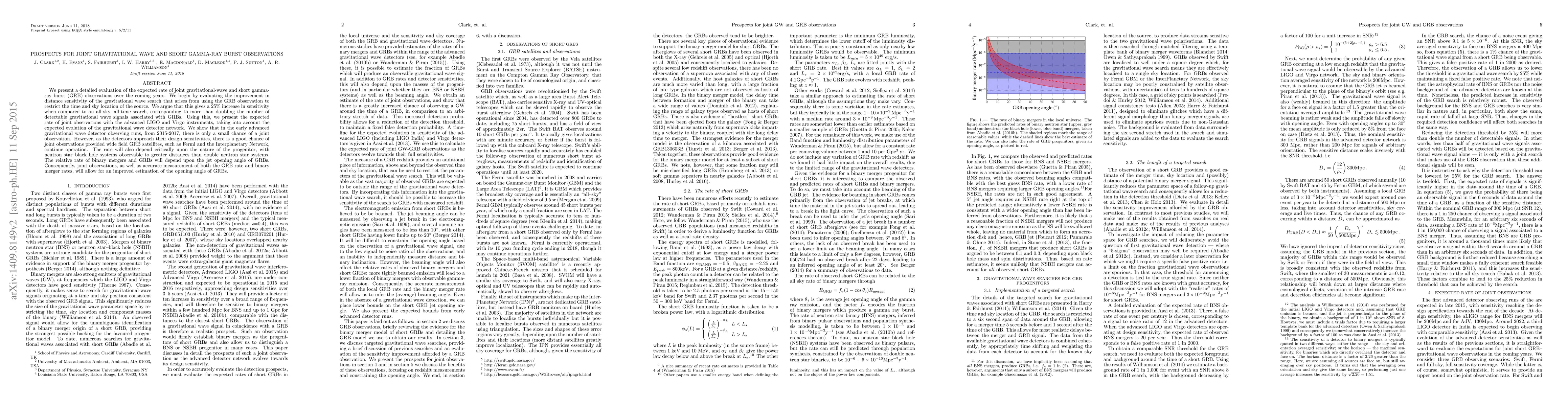 This paper evaluates the expected rate of joint gravitational wave and short gamma-ray burst observations, showing a 25% increase in gravitational wave detection sensitivity when using GRB data. It predicts that while joint observations are unlikely in the early advanced LIGO and Virgo runs, they become more probable as detector sensitivity improves and GRB satellites continue operation.