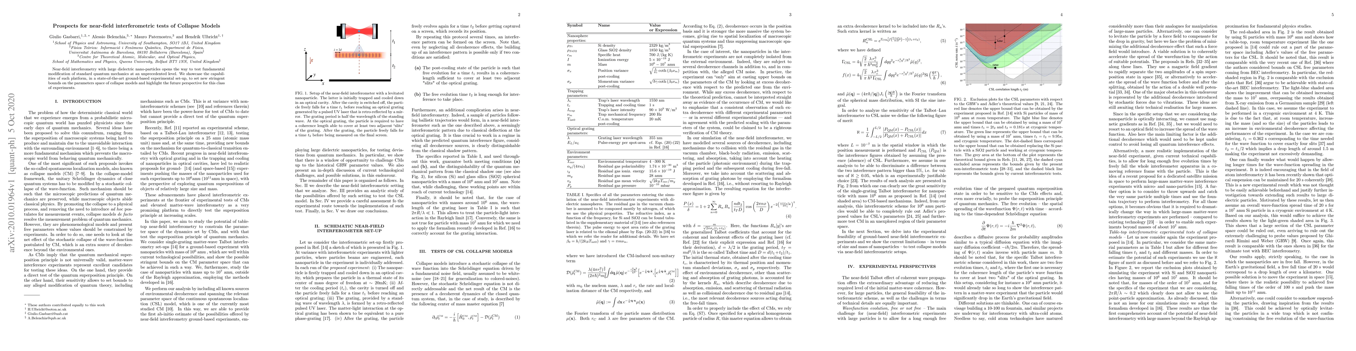 This paper explores the potential of near-field interferometry using large dielectric nano-particles to test collapse models that modify standard quantum mechanics. It demonstrates the feasibility of a state-of-the-art experimental setup to impose new stringent limits on these models and outlines future prospects for such experiments.