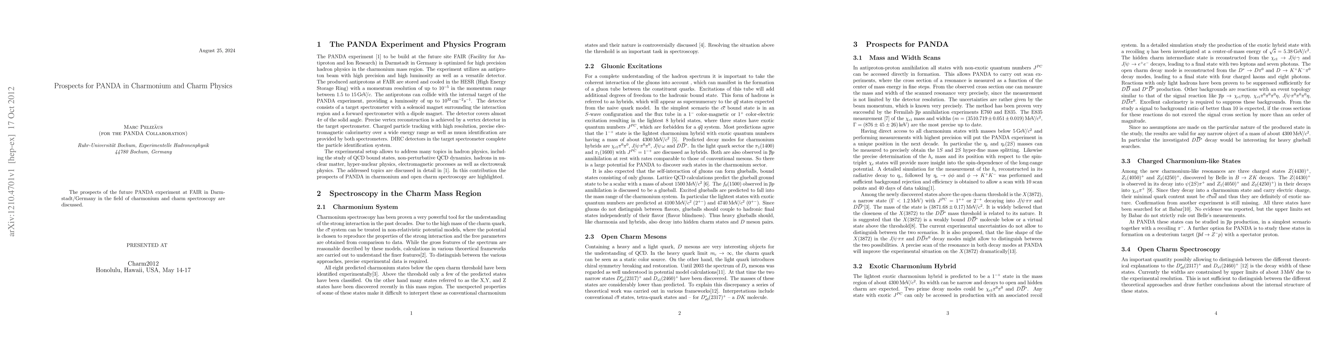 The PANDA experiment at FAIR in Darmstadt aims to explore charmonium and charm physics, offering promising insights into the spectroscopy of these particles. This research will significantly enhance our understanding of the strong force and the behavior of charmed mesons.