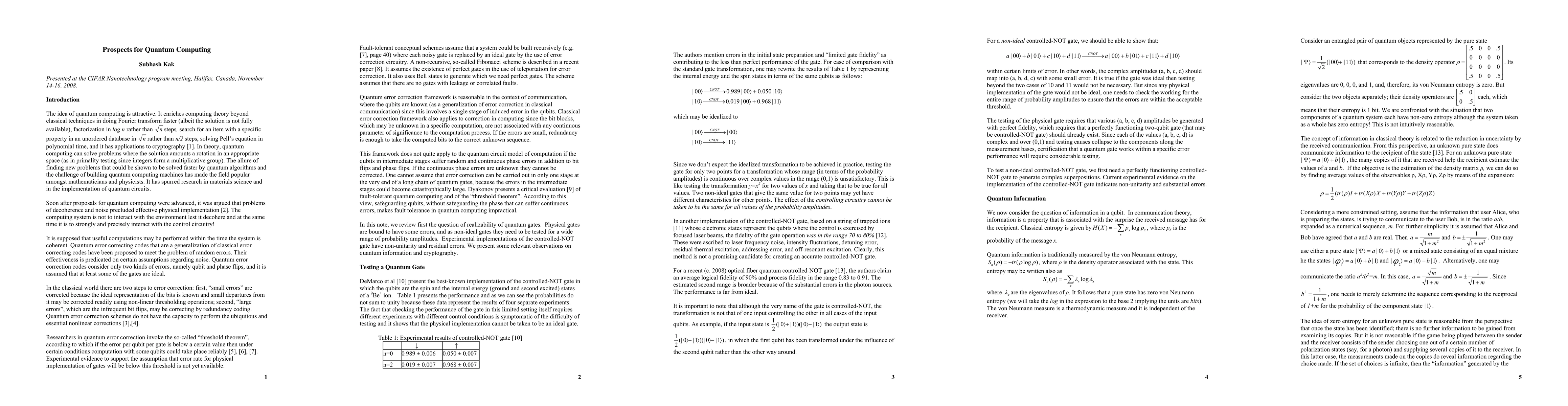 This note reviews prospects for quantum computing. It argues that gates need to be tested for a wide range of probability amplitudes.