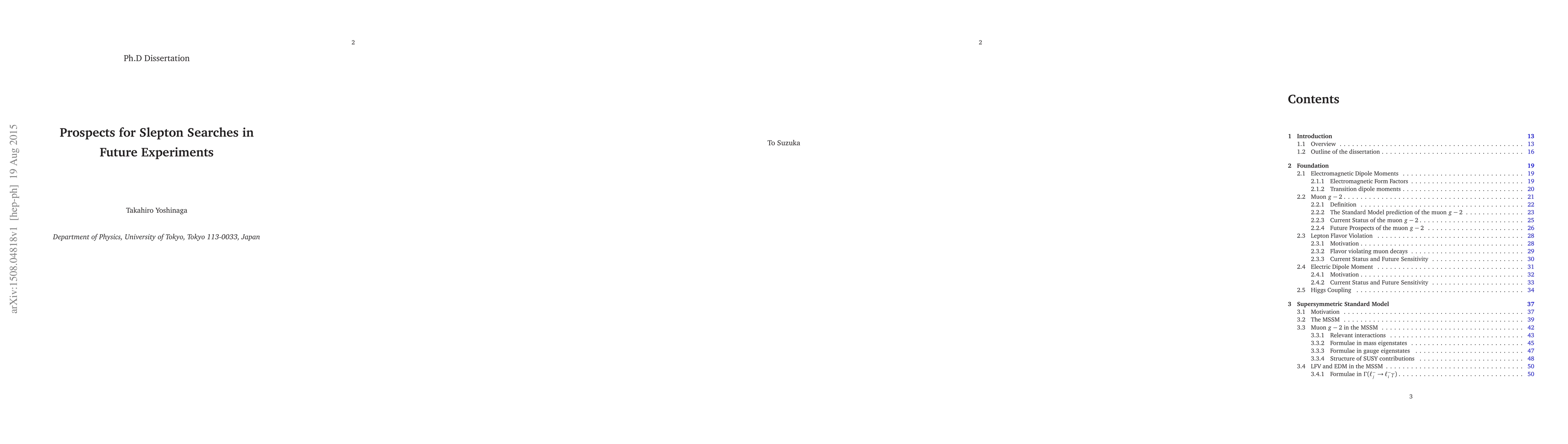 Muon g-2 anomaly, which is mismatch between the theoretical and the experimental values of the anomalous magnetic moment of muons, provides a sensitive probe of new physics. In SUSY, if masses of the superpartners relevant to the muon g-2 are O(100) GeV, the SUSY contributions to the muon g-2 become sizable and the anomaly can be solved. There are two representative SUSY contributions to the muon g-2, the chargino and the neutralino contributions, respectively. Particularly, when the discrepancy of the muon g-2 is dominated by the neutralino contributions, it is found that the discrepancy can be explained if only the Bino and sleptons are light. This setup is "minimal" to solve the muon g-2 anomaly. In this dissertation, we discuss the "minimal" SUSY models where only the Bino and sleptons are light, while the other superparticles are decoupled. When the slepton soft masses are universal, we show that the upper bound on the smuon mass becomes 330 (460) GeV in order to solve the muon g-2 anomaly at the 1sigma (2 sigma) level. It is within the reach of LHC and ILC. Further, light staus might affect the Higgs coupling to di-photon, which is sensitive to new physics. We also study future prospects of the stau which contributes to the Higgs coupling. If the stau is heavier than the smuon, we show that the bound can be as large as 1.4 (1.9) TeV. Such non-universal slepton mass spectrum generically predicts too large LFV/CPV. We show that the models are expected to be probed by LHC/ILC and LFV/CPV complementarily in future.