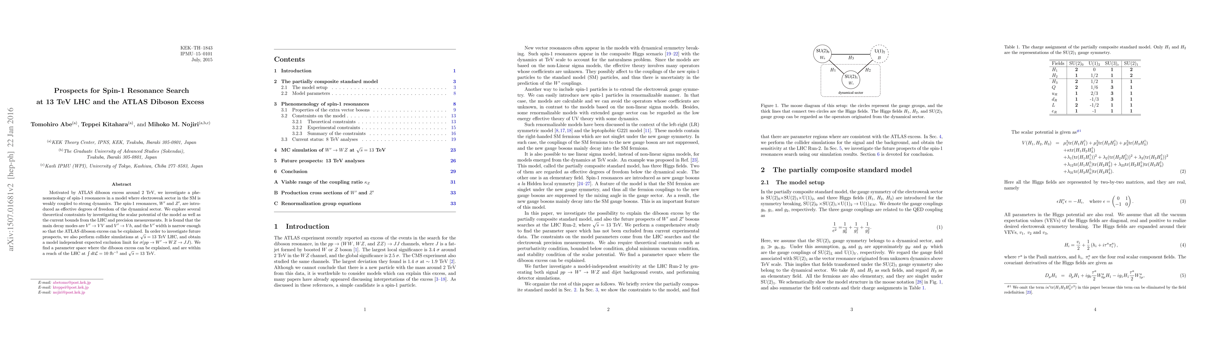 This paper explores spin-1 resonances (W' and Z') in a model where the electroweak sector is weakly coupled to strong dynamics, motivated by the ATLAS diboson excess around 2 TeV. It finds that these resonances can explain the excess through narrow decay modes and predicts that the LHC at 13 TeV with an integrated luminosity of 10 fb^-1 could detect this phenomenon.