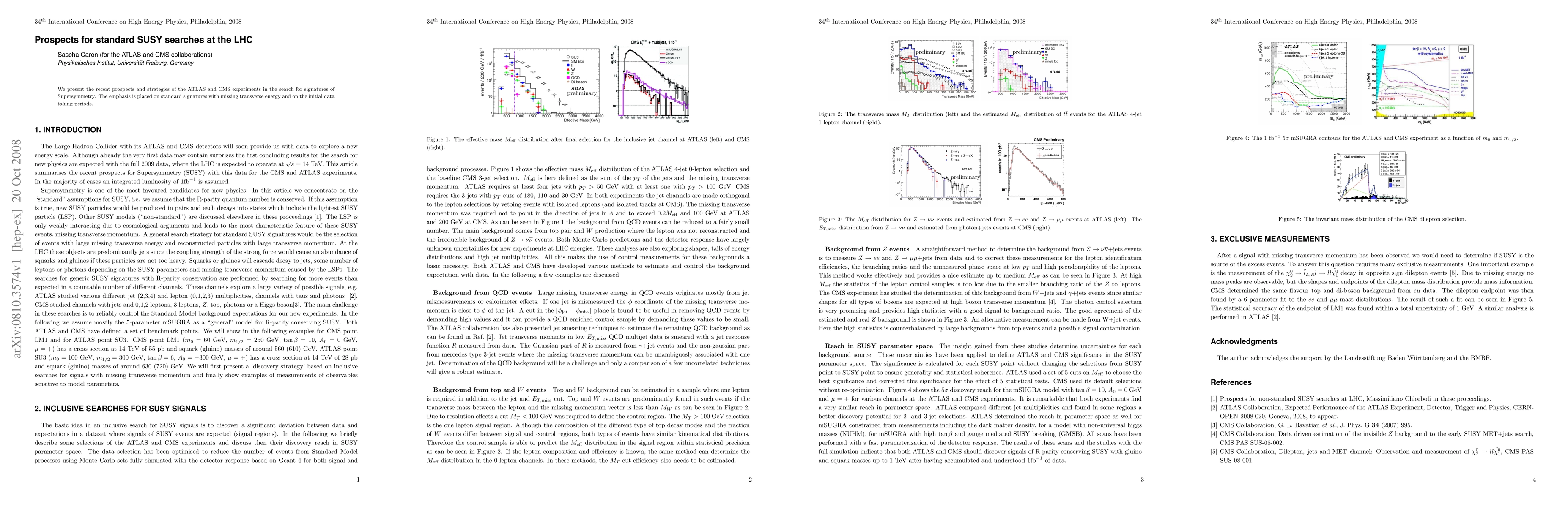 This paper outlines the strategies and prospects of ATLAS and CMS experiments for standard Supersymmetry searches at the LHC, focusing on signatures with missing transverse energy during initial data collection periods. The study aims to enhance the detection of potential supersymmetric particles.