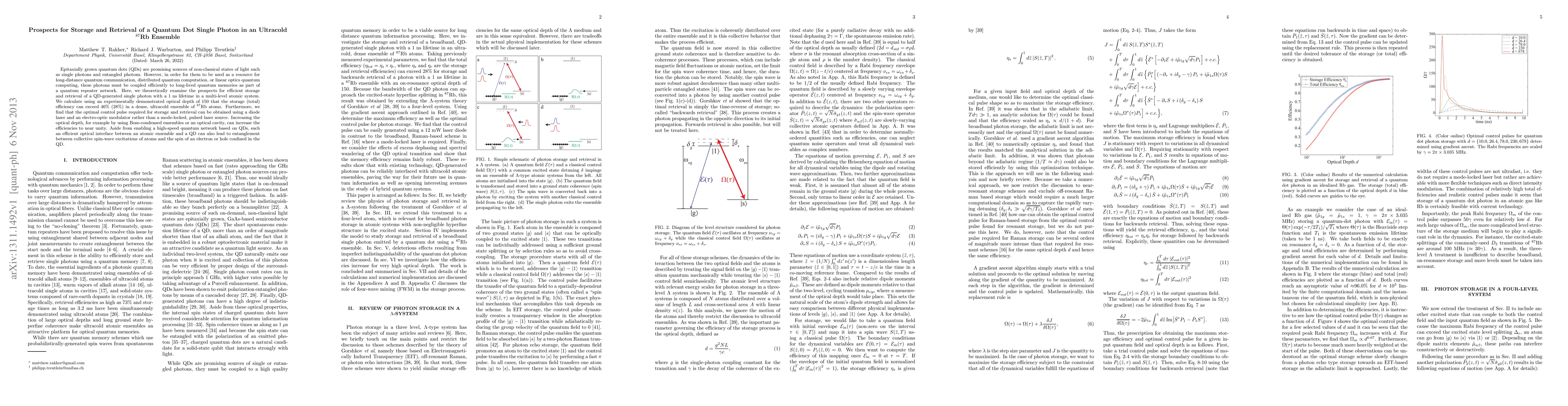 This paper explores the potential for storing and retrieving quantum dot-generated single photons in an ultracold $^{87}$Rb atomic ensemble, achieving theoretical storage efficiencies of over 46%. The study suggests optimal control pulses can be achieved using a diode laser and electro-optic modulator, with higher efficiencies possible through increased optical depth.