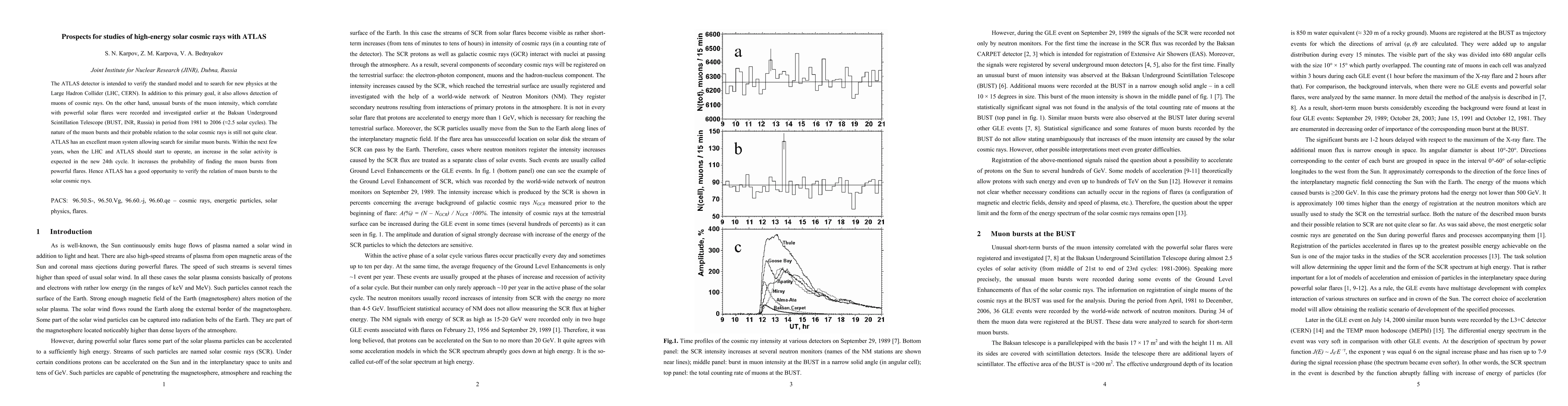 The ATLAS detector, primarily designed for the Large Hadron Collider, also has the capability to detect muons from cosmic rays. This opens up potential for studying high-energy solar cosmic rays, as ATLAS could investigate muon bursts correlated with powerful solar flares, enhancing our understanding of their nature and relation to solar activity.
