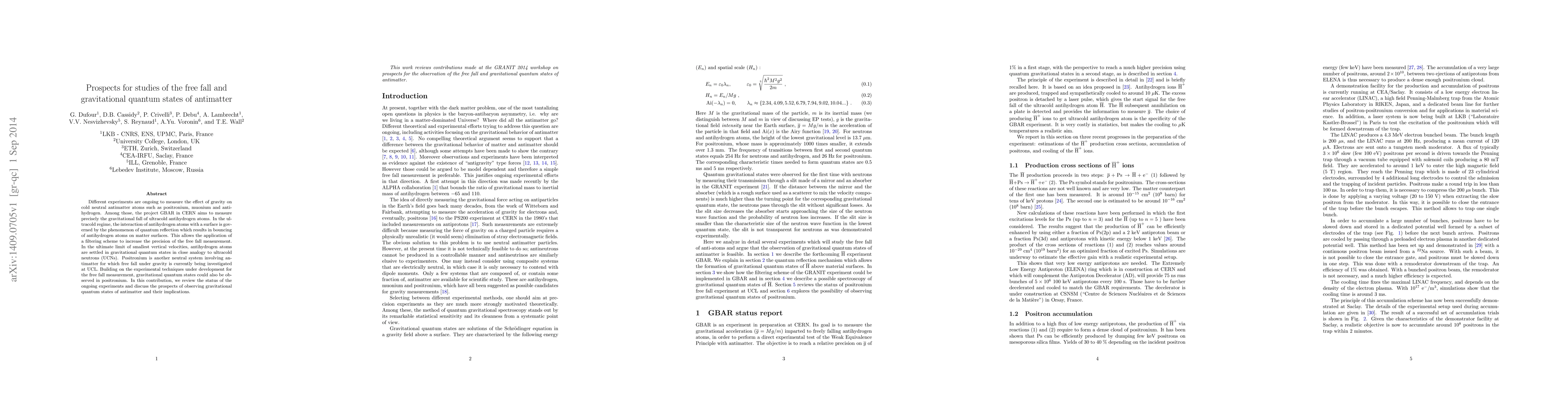 This paper reviews ongoing experiments to measure gravity's effect on cold neutral antimatter atoms, focusing on the GBAR project at CERN for antihydrogen and studies at UCL for positronium. It discusses prospects for observing gravitational quantum states in antimatter and their implications.