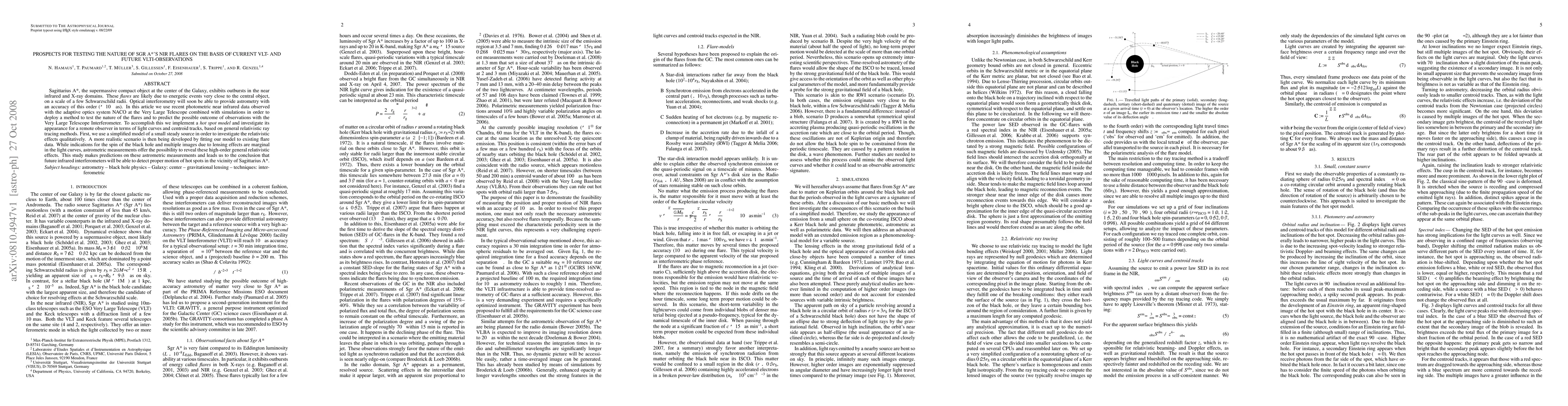 Sagittarius A*, the supermassive compact object at the center of the Galaxy, exhibits outbursts in the near infrared and X-ray domains. These flares are likely due to energetic events very close to the central object, on a scale of a few Schwarzschild radii. Optical interferometry will soon be able to provide astrometry with an accuracy of this order (~10 muas). In this article we use recent photometric near infrared data observed with the adaptive optics system NACO at the Very Large Telescope combined with simulations in order to deploy a method to test the nature of the flares and to predict the possible outcome of observations with the Very Large Telescope Interferometer. To accomplish this we implement a hot spot model and investigate its appearance for a remote observer in terms of light curves and centroid tracks, based on general relativistic ray tracing methods. First, we use a simplified model of a small steady source in order to investigate the relativistic effects qualitatively. A more realistic scenario is then being developed by fitting our model to existing flare data. While indications for the spin of the black hole and multiple images due to lensing effects are marginal in the light curves, astrometric measurements offer the possibility to reveal these high-order general relativistic effects. This study makes predictions on these astrometric measurements and leads us to the conclusion that future infrared interferometers will be able to detect proper motion of hot spots in the vicinity of Sagittarius A*.
