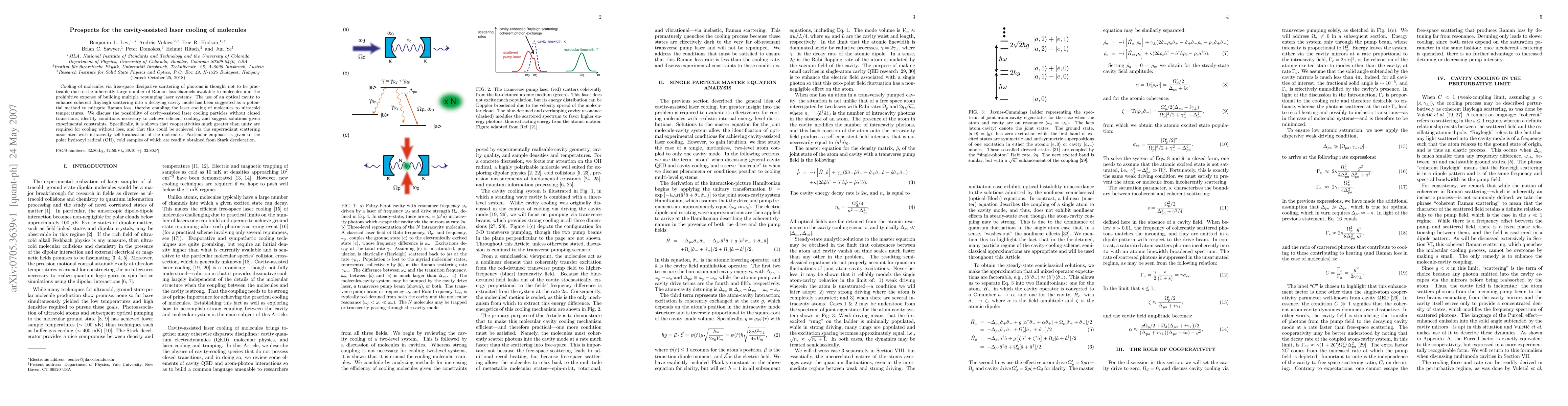 Cooling of molecules via free-space dissipative scattering of photons is thought not to be practicable due to the inherently large number of Raman loss channels available to molecules and the prohibitive expense of building multiple repumping laser systems. The use of an optical cavity to enhance coherent Rayleigh scattering into a decaying cavity mode has been suggested as a potential method to mitigate Raman loss, thereby enabling the laser cooling of molecules to ultracold temperatures. We discuss the possibility of cavity-assisted laser cooling particles without closed transitions, identify conditions necessary to achieve efficient cooling, and suggest solutions given experimental constraints. Specifically, it is shown that cooperativities much greater than unity are required for cooling without loss, and that this could be achieved via the superradiant scattering associated with intracavity self-localization of the molecules. Particular emphasis is given to the polar hydroxyl radical (OH), cold samples of which are readily obtained from Stark deceleration.