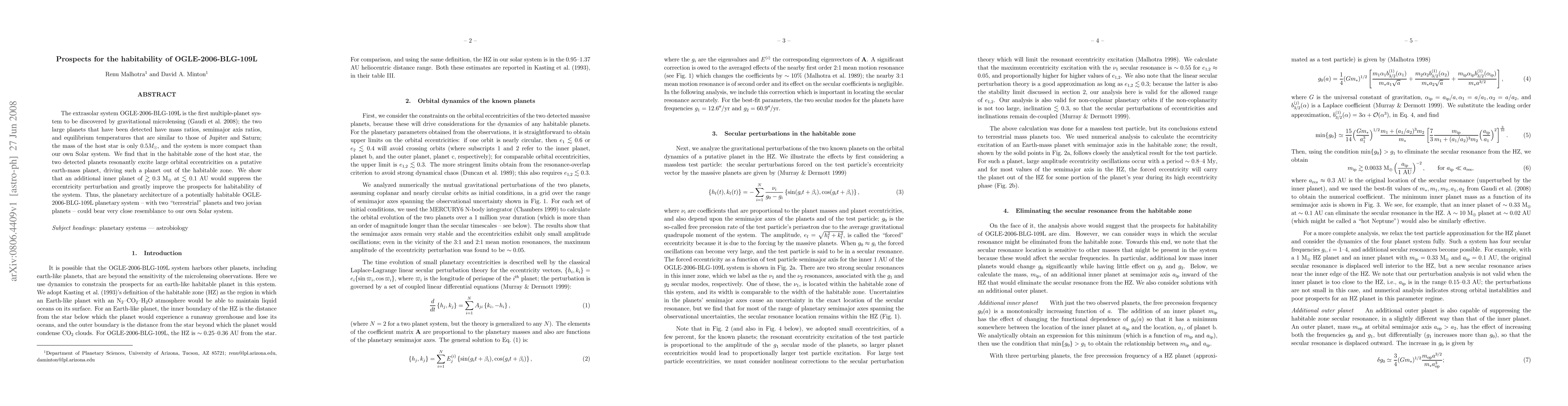 The extrasolar system OGLE-2006-BLG-109L is the first multiple-planet system to be discovered by gravitational microlensing (Gaudi et al., 2008); the two large planets that have been detected have mass ratios, semimajor axis ratios, and equilibrium temperatures that are similar to those of Jupiter and Saturn; the mass of the host star is only 0.5 M_sun, and the system is more compact than our own Solar system. We find that in the habitable zone of the host star, the two detected planets resonantly excite large orbital eccentricities on a putative earth-mass planet, driving such a planet out of the habitable zone. We show that an additional inner planet of ~>0.3M_earth at <~0.1 AU would suppress the eccentricity perturbation and greatly improve the prospects for habitability of the system. Thus, the planetary architecture of a potentially habitable OGLE-2006-BLG-109L planetary system -- with two ``terrestrial'' planets and two jovian planets -- could bear very close resemblance to our own Solar system.