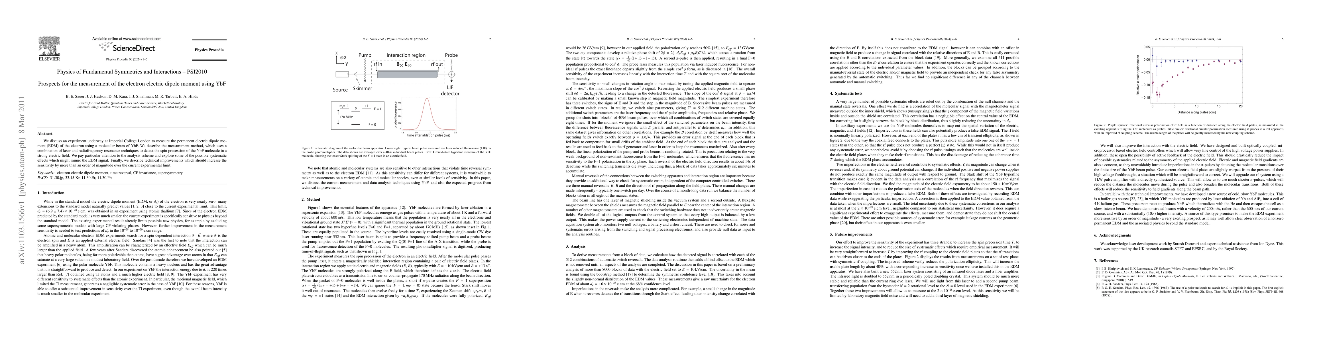 This paper outlines an experiment at Imperial College London to measure the electron's electric dipole moment using YbF molecules, employing laser and radiofrequency techniques to detect spin precession. The authors discuss potential systematic effects and propose technical enhancements to boost sensitivity by over an order of magnitude.