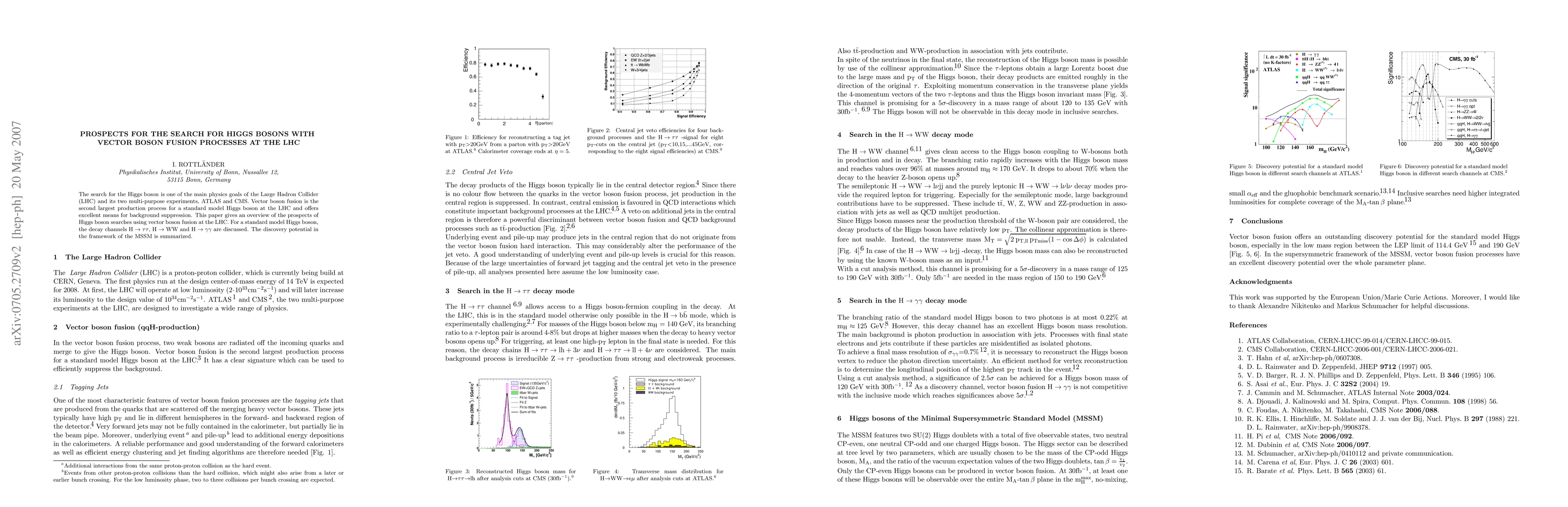 This paper reviews the prospects for discovering Higgs bosons via vector boson fusion at the LHC, focusing on the H->tautau, H->WW, and H->gammagamma decay channels. It also summarizes the potential for discovering Higgs bosons within the framework of the Minimal Supersymmetric Standard Model (MSSM).