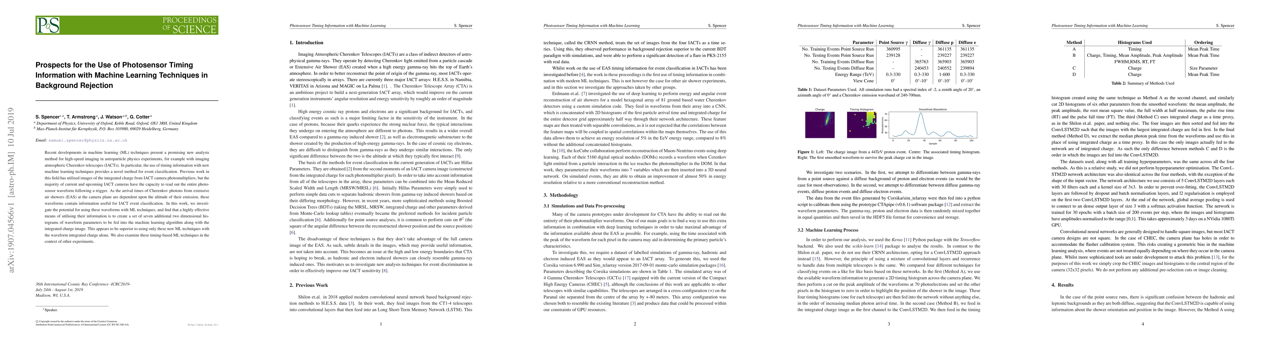 Recent developments in machine learning (ML) techniques present a promising new analysis method for high-speed imaging in astroparticle physics experiments, for example with imaging atmospheric Cherenkov telescopes (IACTs). In particular, the use of timing information with new machine learning techniques provides a novel method for event classification. Previous work in this field has utilised images of the integrated charge from IACT camera photomultipliers, but the majority of current and upcoming IACT cameras have the capacity to read out the entire photosensor waveform following a trigger. As the arrival times of Cherenkov photons from extensive air showers (EAS) at the camera plane are dependent upon the altitude of their emission, these waveforms contain information useful for IACT event classification. In this work, we investigate the potential for using these waveforms with ML techniques, and find that a highly effective means of utilising their information is to create a set of seven additional two dimensional histograms of waveform parameters to be fed into the machine learning algorithm along with the integrated charge image. This appears to be superior to using only these new ML techniques with the waveform integrated charge alone. We also examine these timing-based ML techniques in the context of other experiments.
