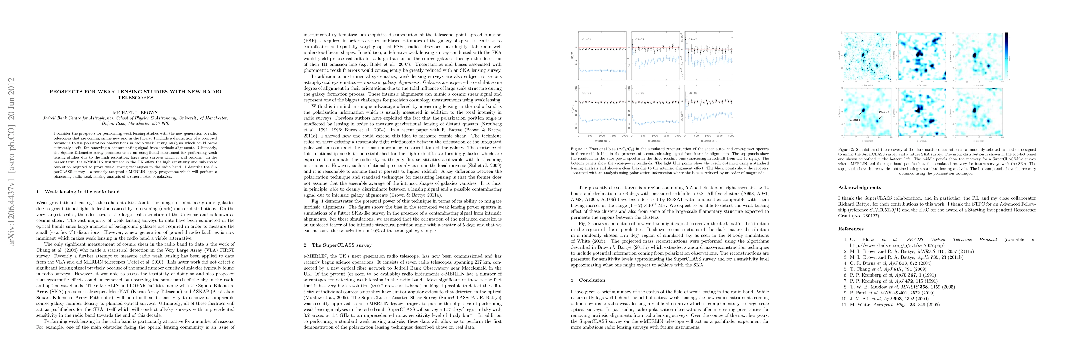 This paper explores the potential of new radio telescopes, particularly the Square Kilometre Array, for weak lensing studies, highlighting a proposed technique using polarization observations to mitigate intrinsic alignments. It also discusses the e-MERLIN instrument and its upcoming SuperCLASS survey, which aims to pioneer radio weak lensing analysis of a supercluster.