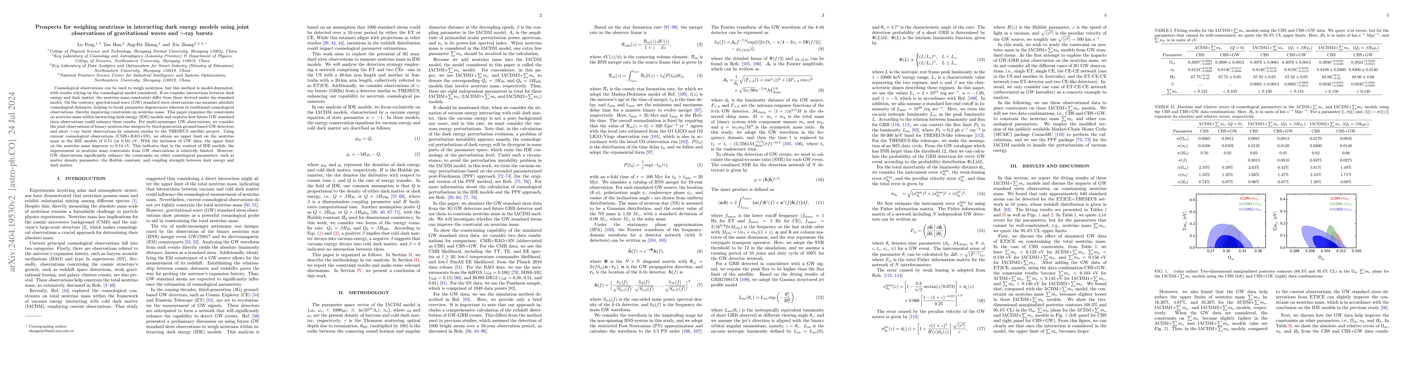 This paper investigates how future gravitational wave observations combined with gamma-ray burst detections can refine estimates of total neutrino mass in interacting dark energy models, suggesting a $5\%$ to $10\%$ improvement over current limits. It also highlights significant enhancements in constraining dark energy parameters and the coupling strength in these models.
