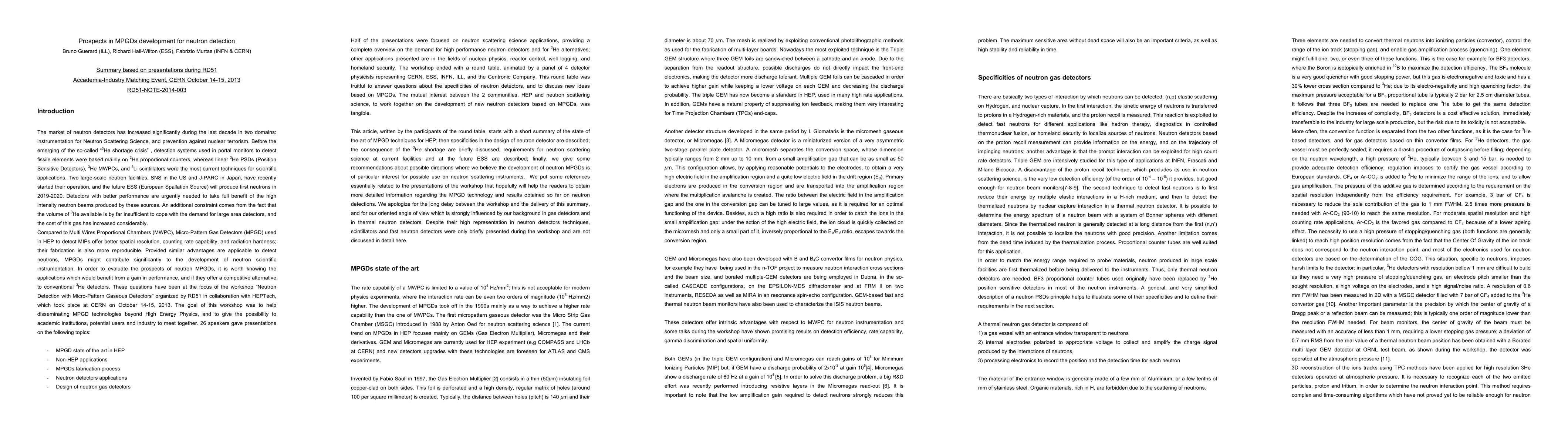 Micro-Pattern Gas Detectors (MPGDs) may contribute to neutron scientific instrumentation due to their better spatial resolution and counting rate capability; a workshop aimed to explore their potential as an alternative to conventional 3He detectors.