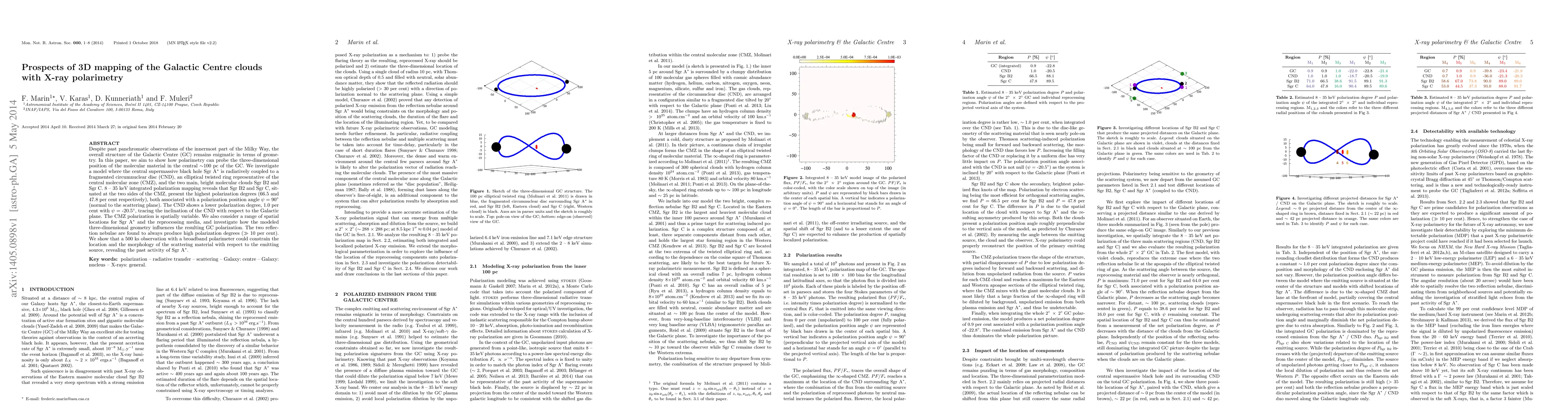 Despite past panchromatic observations of the innermost part of the Milky Way, the overall structure of the Galactic Centre (GC) remains enigmatic in terms of geometry. In this paper, we aim to show how polarimetry can probe the three-dimensional position of the molecular material in the central ~100 pc of the GC. We investigate a model where the central supermassive black hole Sgr A* is radiatively coupled to a fragmented circumnuclear disc (CND), an elliptical twisted ring representative of the central molecular zone (CMZ), and the two main, bright molecular clouds Sgr B2 and Sgr C. 8 -- 35 keV integrated polarization mapping reveals that Sgr B2 and Sgr C, situated at the two sides of the CMZ, present the highest polarization degrees (66.5 and 47.8 per cent respectively), both associated with a polarization position angle psi = 90deg (normal to the scattering plane). The CND shows a lower polarization degree, 1.0 per cent with psi = -20.5deg, tracing the inclination of the CND with respect to the Galactic plane. The CMZ polarization is spatially variable. We also consider a range of spatial locations for Sgr A* and the reprocessing media, and investigate how the modeled three-dimensional geometry influences the resulting GC polarization. The two reflection nebulae are found to always produce high polarization degrees (>> 10 per cent). We show that a 500 ks observation with a broadband polarimeter could constrain the location and the morphology of the scattering material with respect to the emitting source, revealing the past activity of Sgr A*.