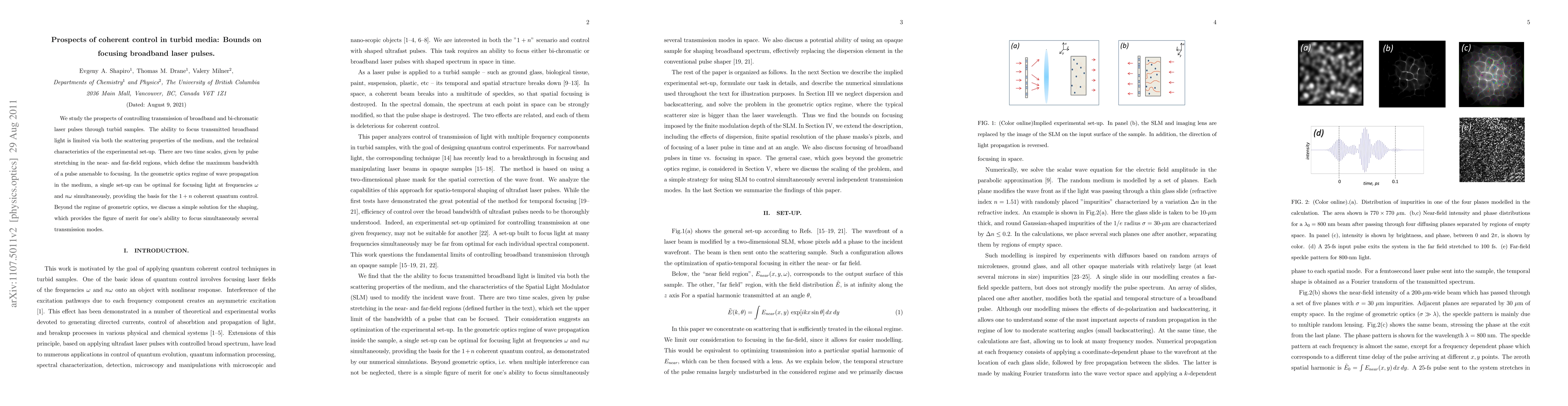 This paper explores the potential for coherent control of broadband laser pulses through turbid media, identifying limits imposed by scattering and experimental setup. It proposes a method for focusing light at multiple frequencies, offering a basis for advanced coherent quantum control.