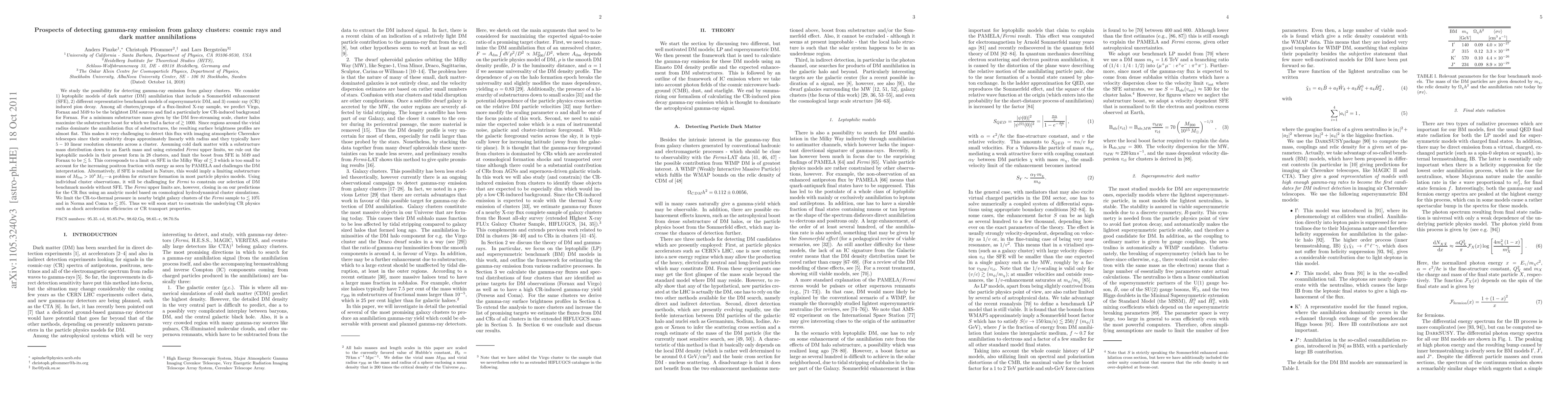 We study the possibility for detecting gamma-ray emission from galaxy clusters. We consider 1) leptophilic models of dark matter (DM) annihilation that include a Sommerfeld enhancement (SFE), 2) different representative benchmark models of supersymmetric DM, and 3) cosmic ray (CR) induced pion decay. Among all clusters/groups of a flux-limited X-ray sample, we predict Virgo, Fornax and M49 to be the brightest DM sources and find a particularly low CR-induced background for Fornax. For a minimum substructure mass given by the DM free-streaming scale, cluster halos maximize the substructure boost for which we find a factor above 1000. Since regions around the virial radius dominate the annihilation flux of substructures, the resulting surface brightness profiles are almost flat. This makes it very challenging to detect this flux with imaging atmospheric Cherenkov telescopes. Assuming cold dark matter with a substructure mass distribution down to an Earth mass and using extended Fermi upper limits, we rule out the leptophilic models in their present form in 28 clusters, and limit the boost from SFE in M49 and Fornax to be < 5. This corresponds to a limit on SFE in the Milky Way of < 3, which is too small to account for the increasing positron fraction with energy as seen by PAMELA and challenges the DM interpretation. Alternatively, if SFE is realized in Nature, this would imply a limiting substructure mass of M_lim > 10^4 M_sol - a problem for structure formation. Using individual cluster observations, it will be challenging for Fermi to constrain our selection of DM benchmark models without SFE. The Fermi upper limits are, however, closing in on our predictions for the CR flux using an analytic model based on cosmological hydrodynamical cluster simulations. We limit the CR-to-thermal pressure in nearby bright galaxy clusters of the Fermi sample to < 10% and in Norma and Coma to < 3%.