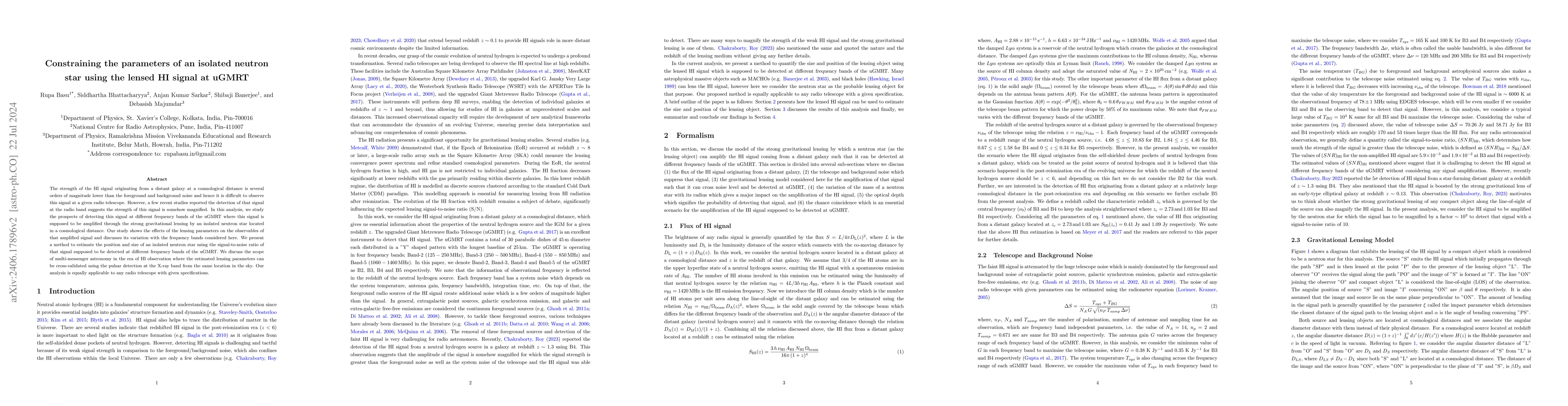 This paper explores the potential of detecting the globally weak HI-21cm signal amplified by gravitational lensing from an isolated neutron star using the uGMRT radio telescope. It examines how lensing parameters affect the observable signal across different frequency bands and proposes a method for estimating the neutron star's position and size based on the detected signal-to-noise ratio.