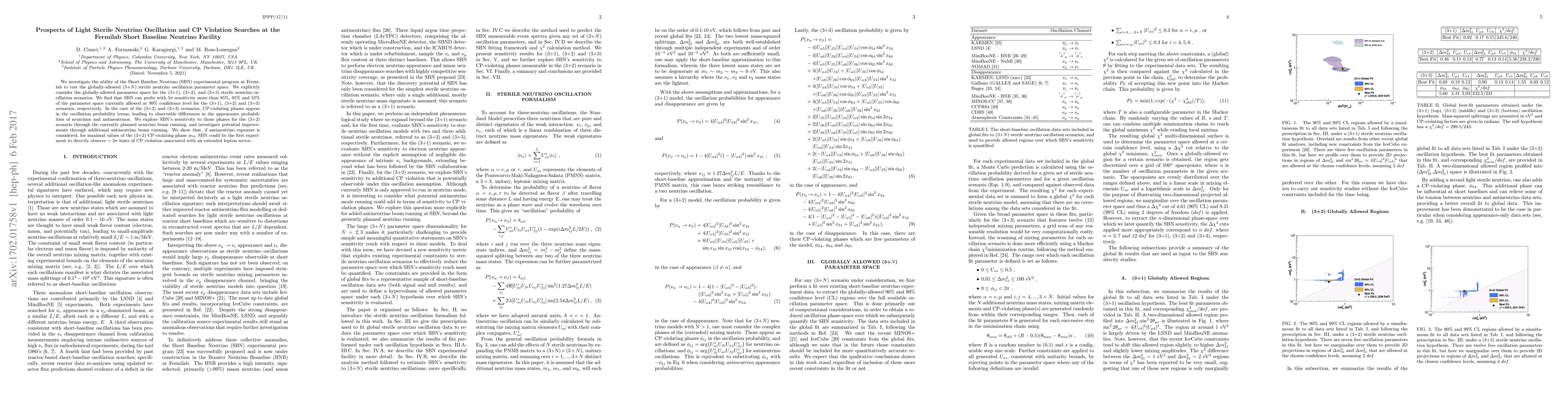 The Fermilab Short Baseline Neutrino Facility (SBN) has the potential to probe over 85%, 95%, and 55% of the globally-allowed parameter space for (3+1), (3+2), and (3+3) sterile neutrino oscillation scenarios, respectively. Additionally, the facility may detect CP-violating phases in the (3+2) scenario, potentially observing hints of CP violation with antineutrino beam running.