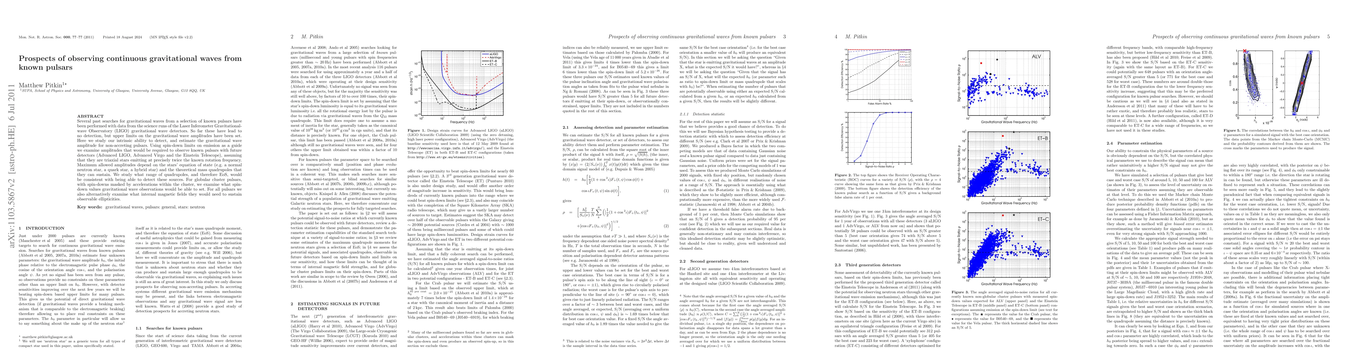 This paper investigates the potential for detecting continuous gravitational waves from known pulsars using future detectors like Advanced LIGO, Advanced Virgo, and the Einstein Telescope. It sets upper limits on gravitational wave amplitudes and explores the necessary quadrupole moments and internal magnetic fields for pulsars to be observable, depending on their equation of state.